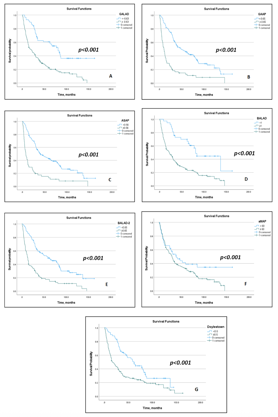 - Cagnin, S.; Donghia, R.; Martini, A.; Pesole, P.L.; Coletta, S.; Shahini, E.; Boninsegna, G.; Biasiolo, A.; Pontisso, P.; Giannelli, G. Galad Score as a Prognostic Marker for Patients with Hepatocellular Carcinoma. Int. J. Mol. Sci. 2023, 24, 16485. [Google Scholar] [CrossRef]
