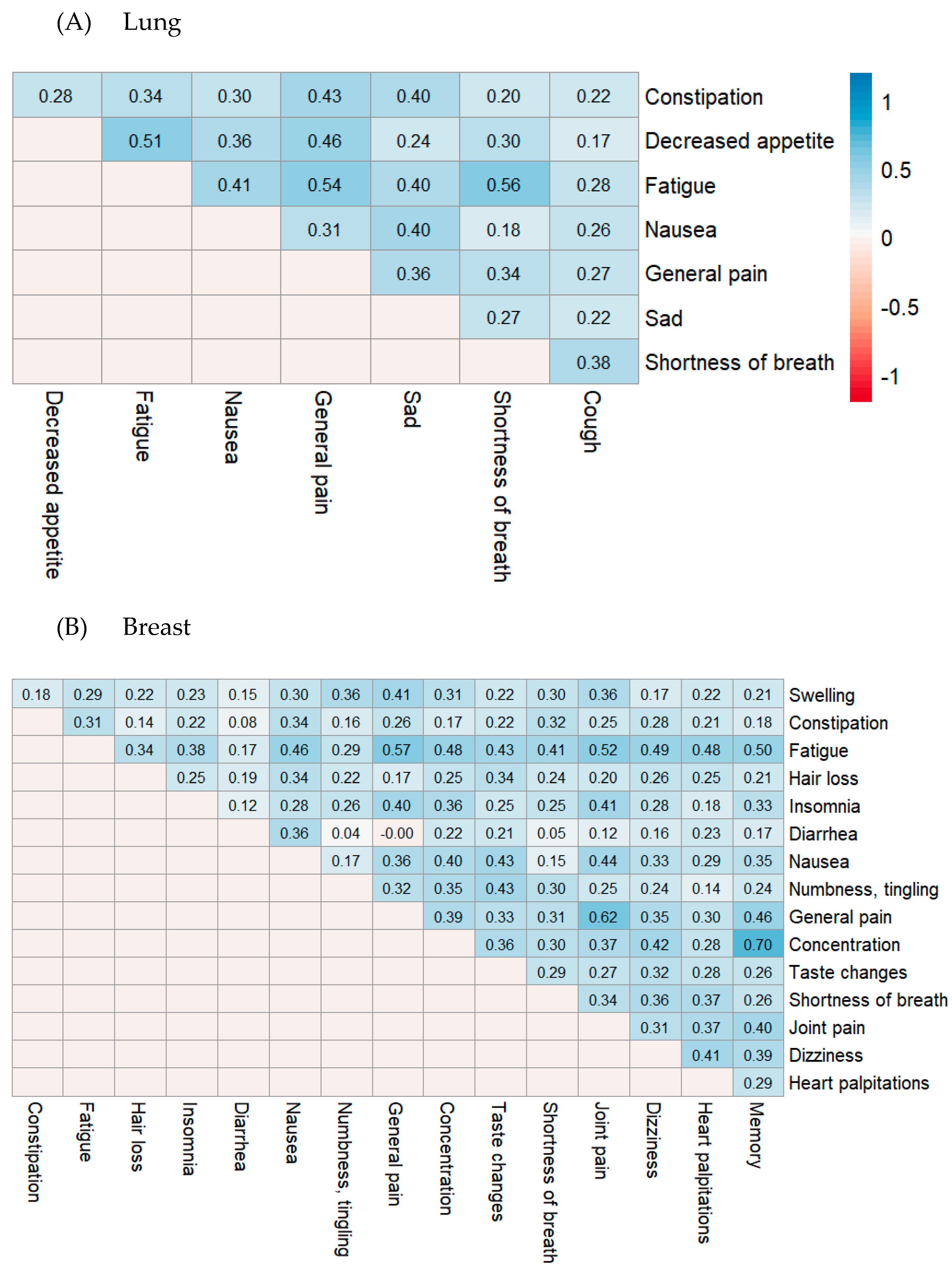 | Lung | Fatigue | 1 | - | - | - | 0.87 |