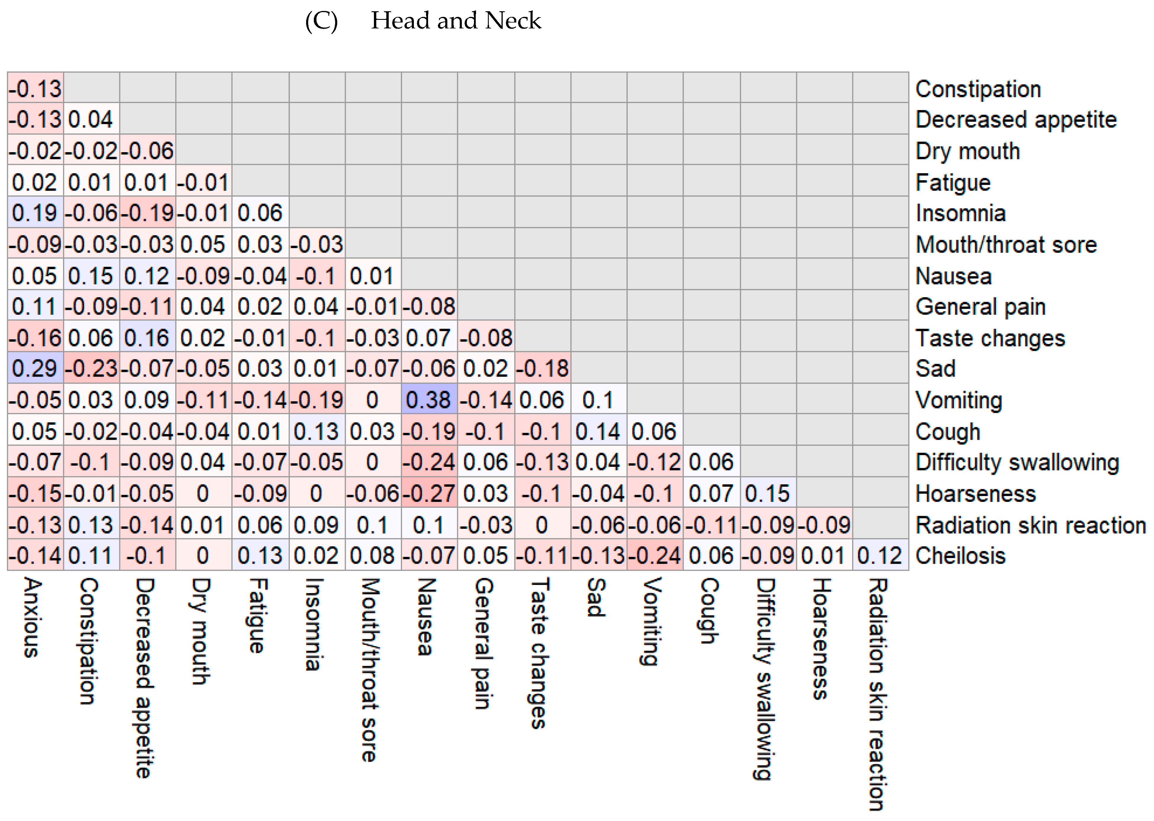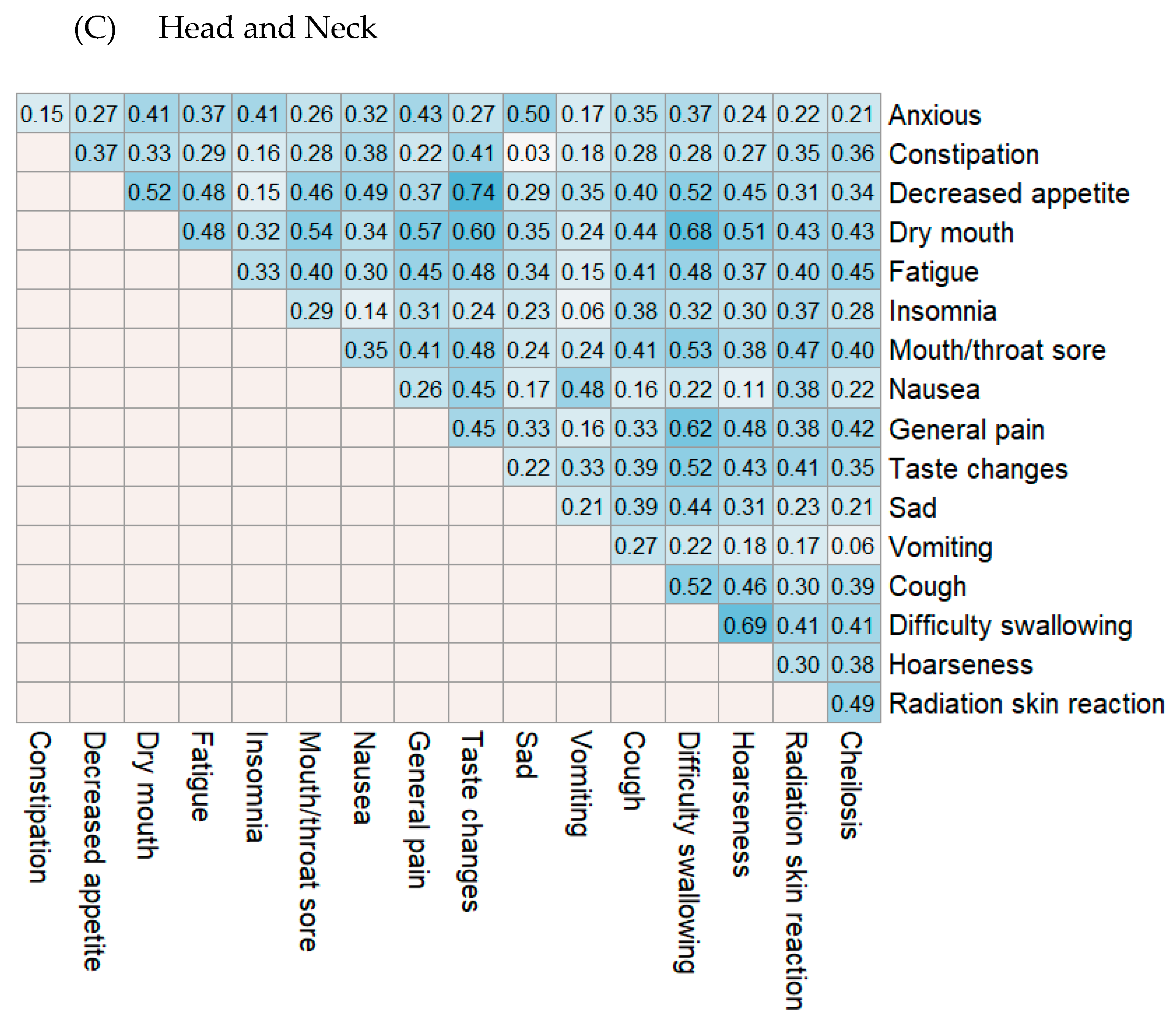 | Head and Neck | Difficulty swallowing | 1.000 | - | - | - | 0.877 |