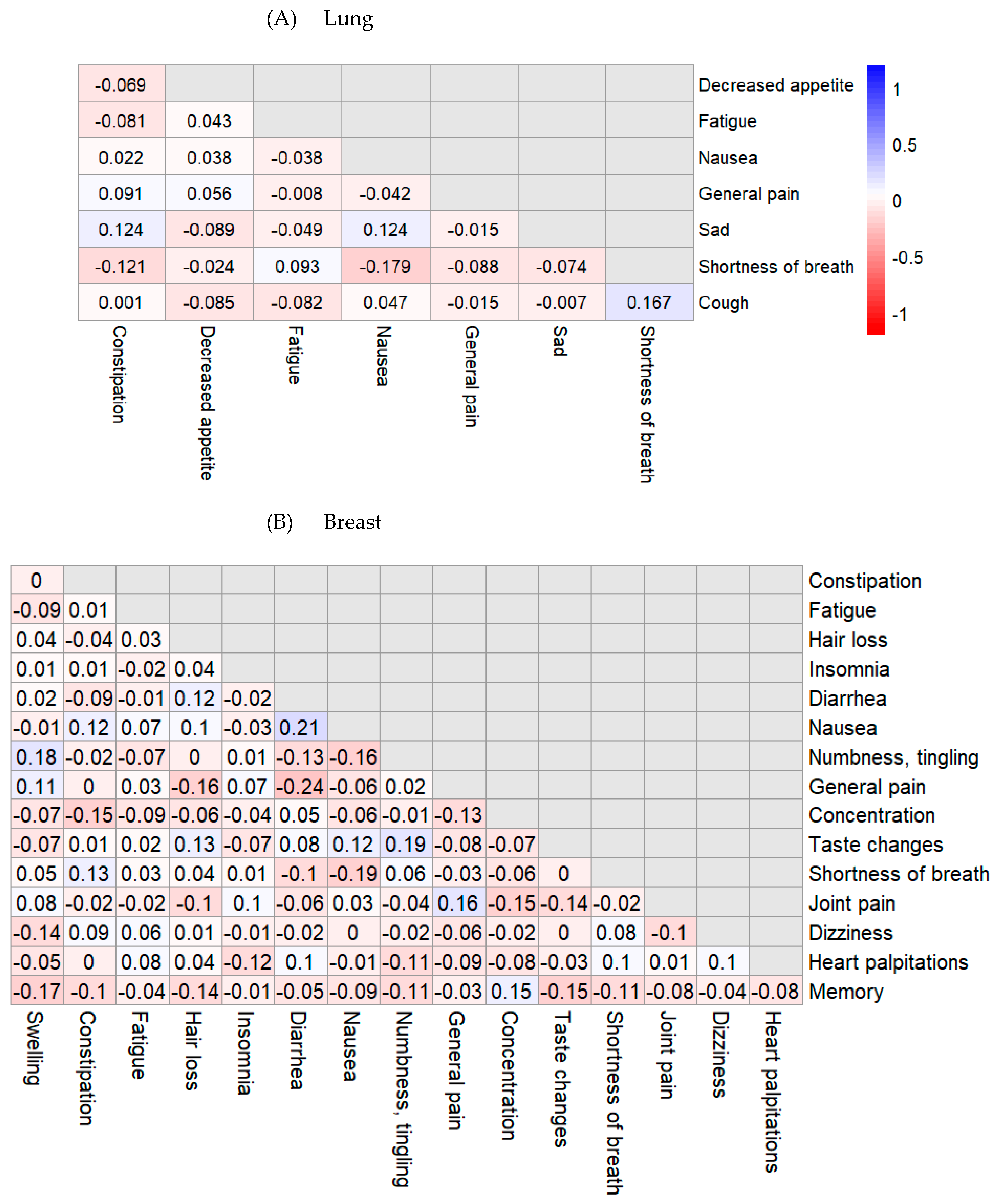 | Breast | Fatigue | 1.000 | - | - | - | 0.844 |