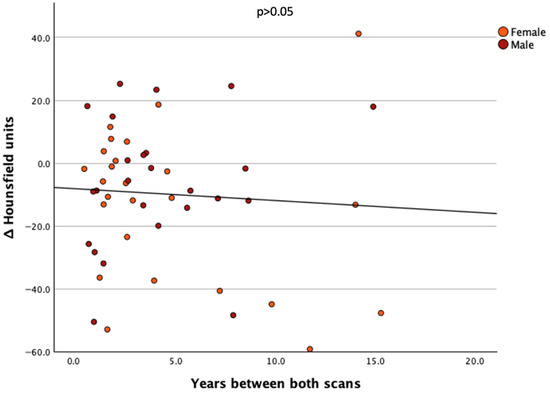 3.3. Correlation Between ΔHU and Years Between PET/CT Scans