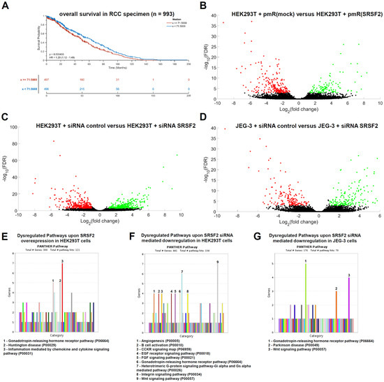 Figure 5F,G). For validation, an analogous transcriptome analysis of siRNA-mediated SRSF2 downregulation in JEG-3 cells was performed. Statistically significantly upregulated (