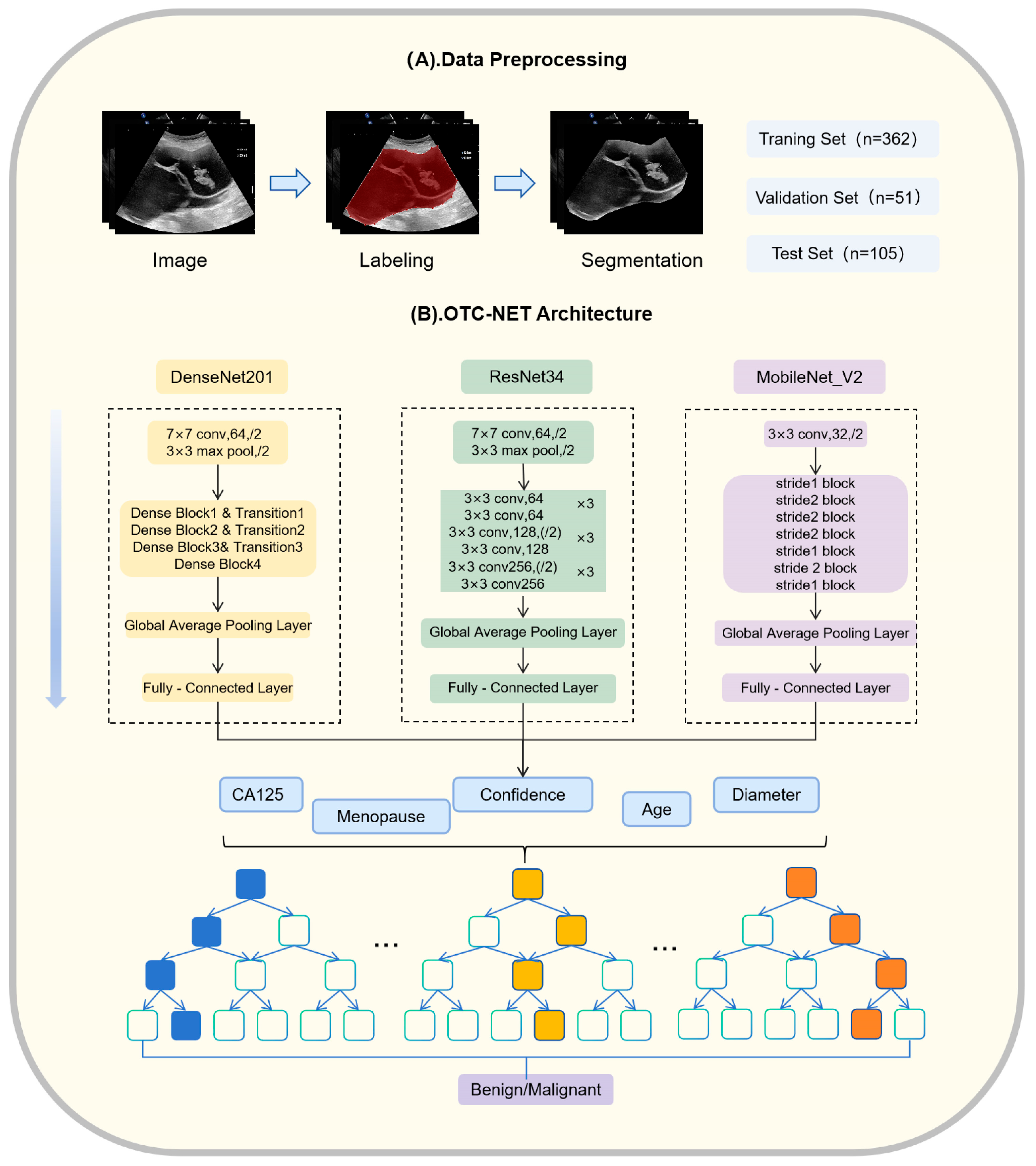 APA StyleLiu, P., Ruan, Y., Fan, Y., Li, P., Liu, Z., Wu, S., Zheng, X., Wu, X., Liu, Y., & Liu, S. (2025). OTC-NET: A Multimodal Method for Accurate Diagnosis of Ovarian Cancer in O-RADS Category 4 Masses. Cancers, 17(21), 3466. https://doi.org/10.3390/cancers17213466