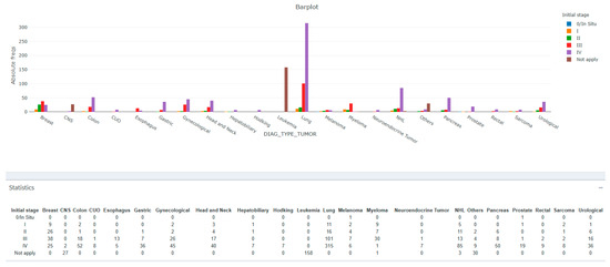 Figure 3 shows the distribution of tumors by stages, with a predominance of patients with stage IV lung cancer. Of the 315 cases of stage IV lung cancer, 218 (69.2%) were referred to PCP and 97 (30.8%) were not. In contrast, for the 158 patients with leukemia, 42 (26.6%) were referred to PCP and 116 (73.4%) were not. For more details on the distribution of patients referred to PCP according to tumor type, see Figure S1.