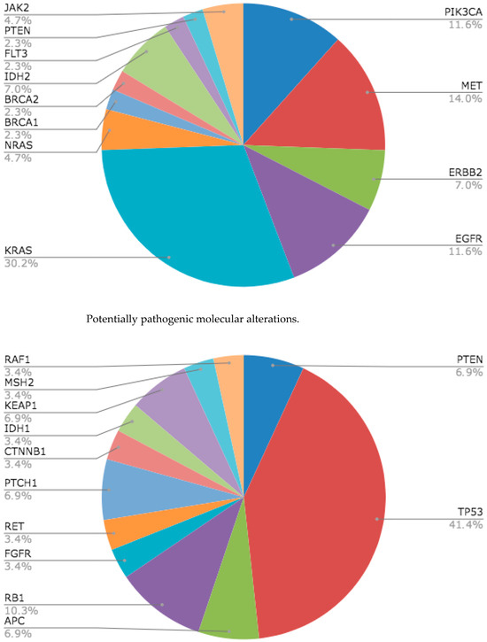 In our series, concordance was particularly low for other alterations such as BRAF and KRAS, with lower detection rates in plasma, similar to what has been reported in other cohorts [19,20,21,22,23]. This suggests that some molecular alterations may be underrepresented in ctDNA, or that tumor DNA shedding into the circulation varies by molecular subtype. Therefore, combining both tissue and plasma analyses provides a more comprehensive view of the patient’s molecular profile and highlights the need for clear integration criteria in therapeutic algorithms [4,9].