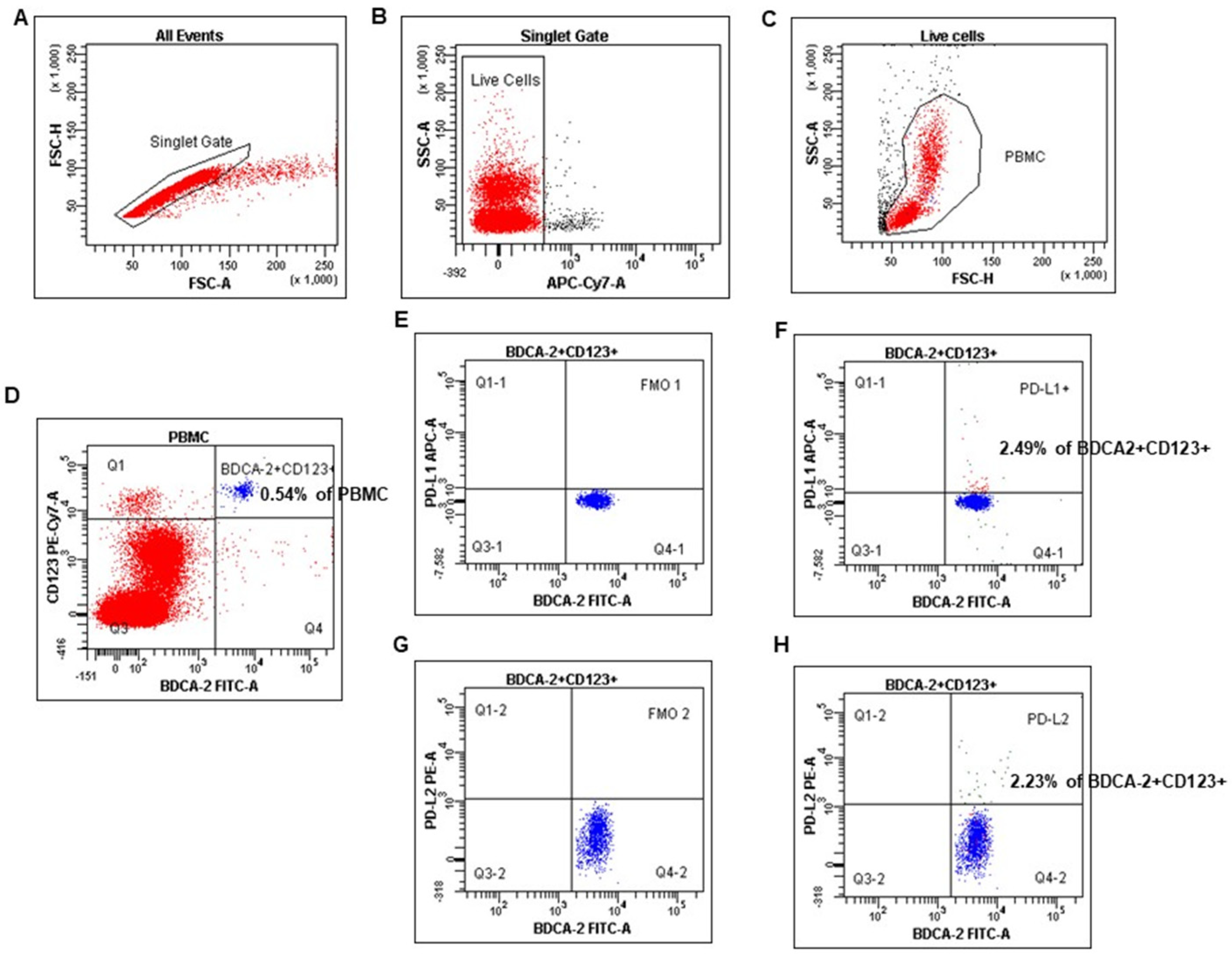 3.3. Percentage of Plasmacytoid BDCA-2+CD123+ DCs with PD-L1 or PD-L2 Expression in Endometrial Cancer Patients