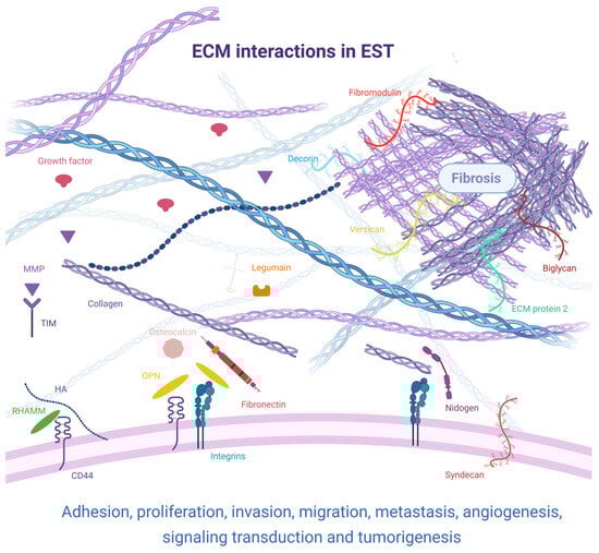 - Walker, C.; Mojares, E.; Del Río Hernández, A. Role of Extracellular Matrix in Development and Cancer Progression. Int. J. Mol. Sci. 2018, 19, 3028. [Google Scholar] [CrossRef] [PubMed]