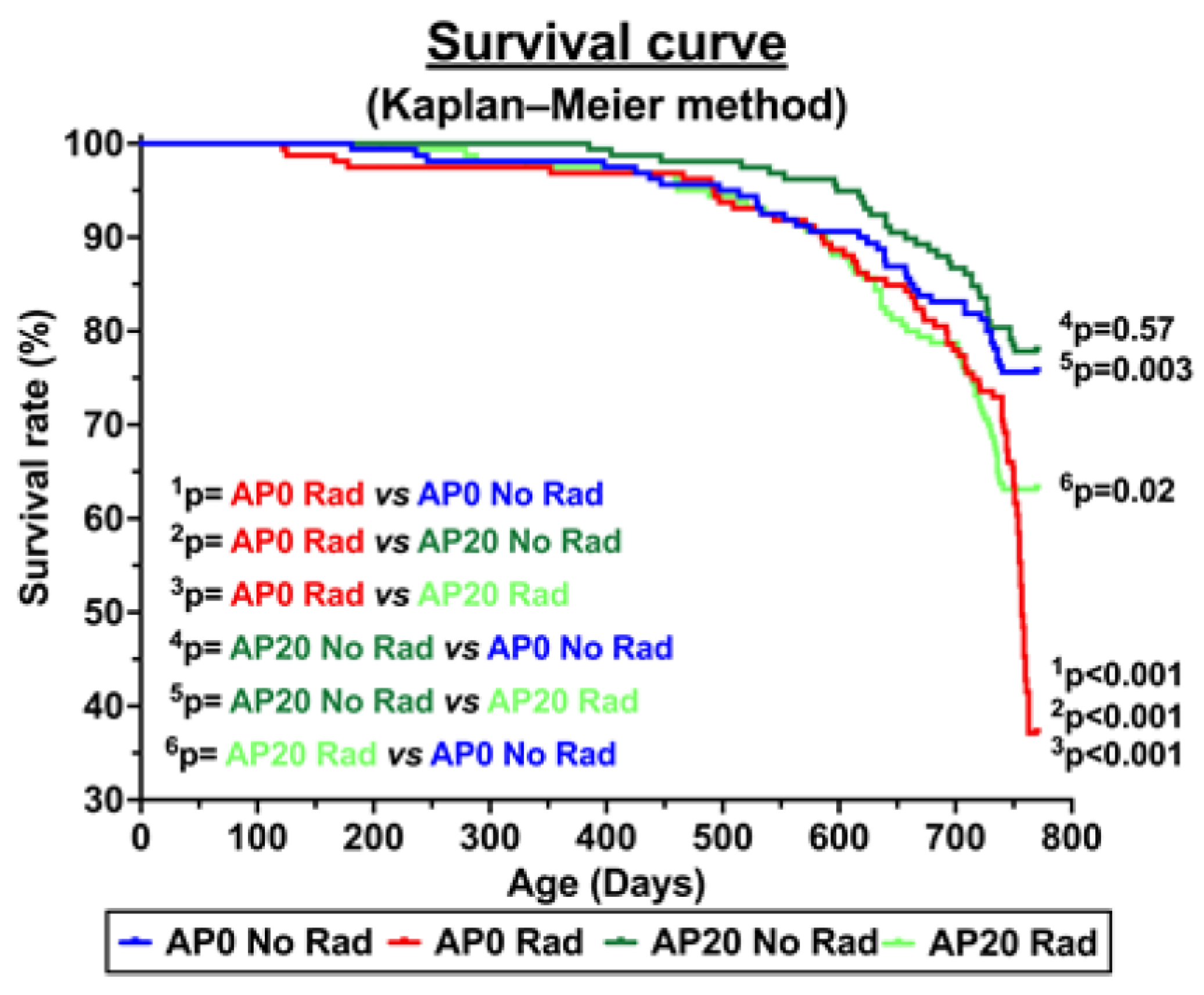 | AP 20 Rad | 5.64 ± 0.58 | 1329 ± 257.76 | 38.54 ± 38.54 | 2.49 ± 0.61 | 2.66 ± 0.71 | 0.43 ± 0.08 |
