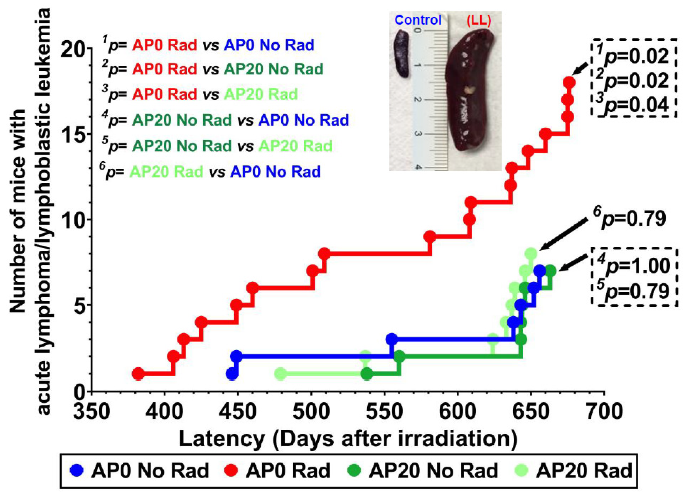 Chicago/Turabian StylePeanlikhit, Tanat, Jingxuan Liu, Tahmeena Ahmed, James S. Welsh, Tobias Karakach, Kenneth R. Shroyer, Elbert Whorton, Jr., and Kanokporn Noy Rithidech. 2025. "Daily Consumption of Apigenin Prevents Acute Lymphoma/Lymphoblastic Leukemia in Male C57BL/6J Mice Exposed to Space-like Radiation" Cancers 17, no. 21: 3513. https://doi.org/10.3390/cancers17213513