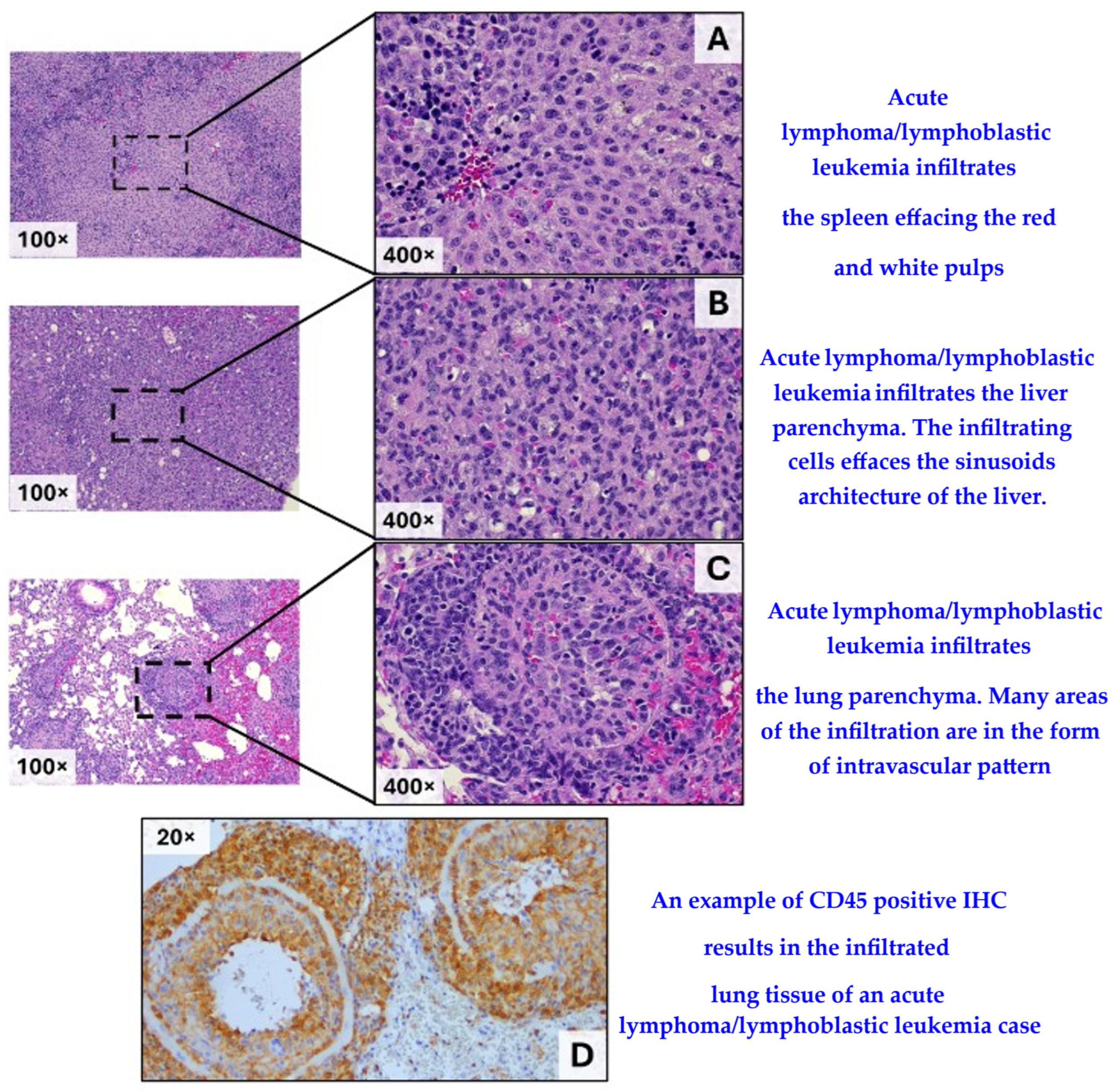 - Morse, H.C., III; Anver, M.R.; Fredrickson, T.N.; Haines, D.C.; Harris, A.W.; Harris, N.L.; Jaffe, E.S.; Kogan, S.C.; MacLennan, I.C.M.; Pattengale, P.K.; et al. Bethesda proposals for classification of lymphoid neoplasms in mice. Blood 2002, 100, 246–258. [Google Scholar] [CrossRef]