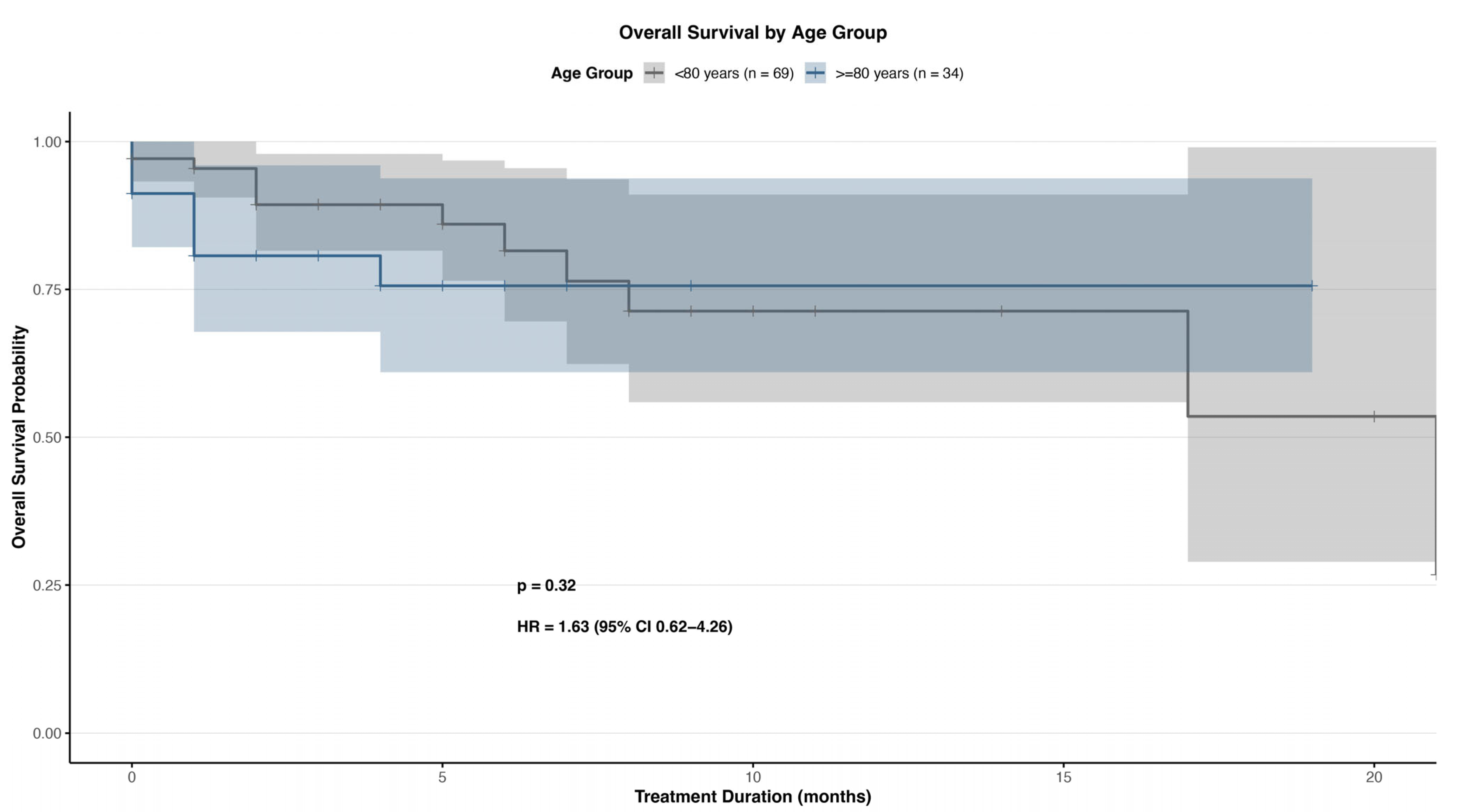 | All Patients (n = 103) | <80 Years (n = 69) | ≥80 Years (n = 34) | |