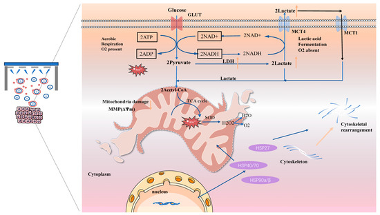 Additionally, ROS can oxidize thiol groups in actin and tubulin, leading to cytoskeletal disruption and impaired cell migration [14]. Tumor cells, characterized by elevated basal ROS levels; highly polarized mitochondrial membranes; and weakened antioxidant defenses, like decreased glutathione (GLT) and superoxide dismutase (SOD), are more susceptible to ROS-induced damage compared to normal cells [15,16]. Persistent ROS accumulation can also reprogram tumor cell energy metabolism from oxidative phosphorylation to aerobic glycolysis (Warburg effect), favoring lactate production even under normoxic conditions [17]. Lactate accumulation promotes tumor proliferation, immune evasion, and microenvironment acidification, facilitating angiogenesis and suppressing cytotoxic immune cell functions, thereby creating an immunosuppressive milieu [18]. NIPP has been shown to disrupt glycolytic metabolism, inhibit lactate production, and potentially reverse immunosuppression, enhancing antitumor immune responses [19,20].