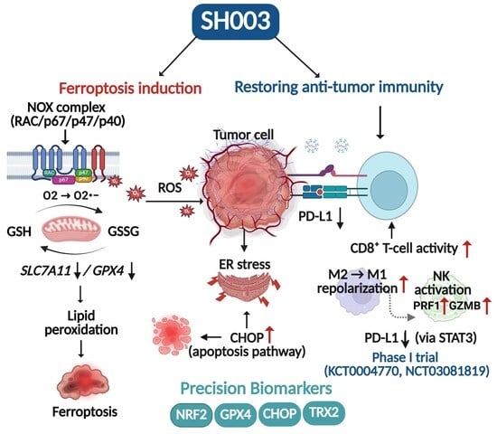 Chicago/Turabian StylePark, Moon Nyeo, Md. Maharub Hossain Fahim, Han Na Kang, Hanul Bae, Amama Rani, Fahrul Nurkolis, Trina E. Tallei, Seong-Gyu Ko, and Bonglee Kim. 2025. "SH003 as a Redox-Immune Modulating Phytomedicine: A Ferroptosis Induction, Exosomal Crosstalk, and Translational Oncology Perspective" Cancers 17, no. 21: 3519. https://doi.org/10.3390/cancers17213519