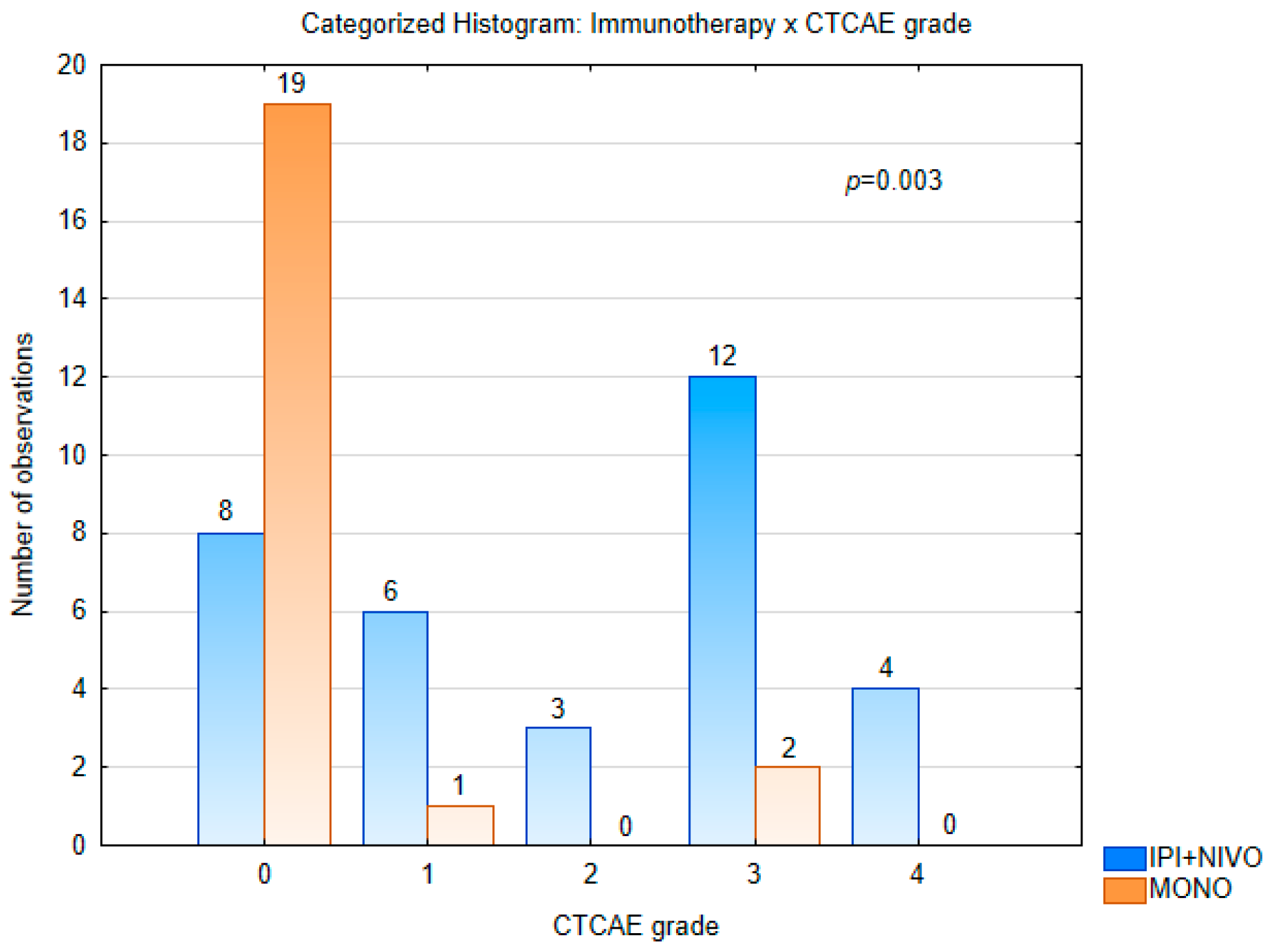 - Ciernik, A.; Ciernik, L.; Bonczkowitz, P.; Morak, M.; Heinzerling, L.; Bennaceur, Y.; Lawless, A.; Sullivan, R.; Kött, J.; Gebhardt, C.; et al. Retrospective multicenter analysis of real-life toxicity and outcome of ipilimumab and nivolumab in metastatic uveal melanoma. Oncologist 2025, 30, oyaf173. [Google Scholar] [CrossRef] [PubMed]