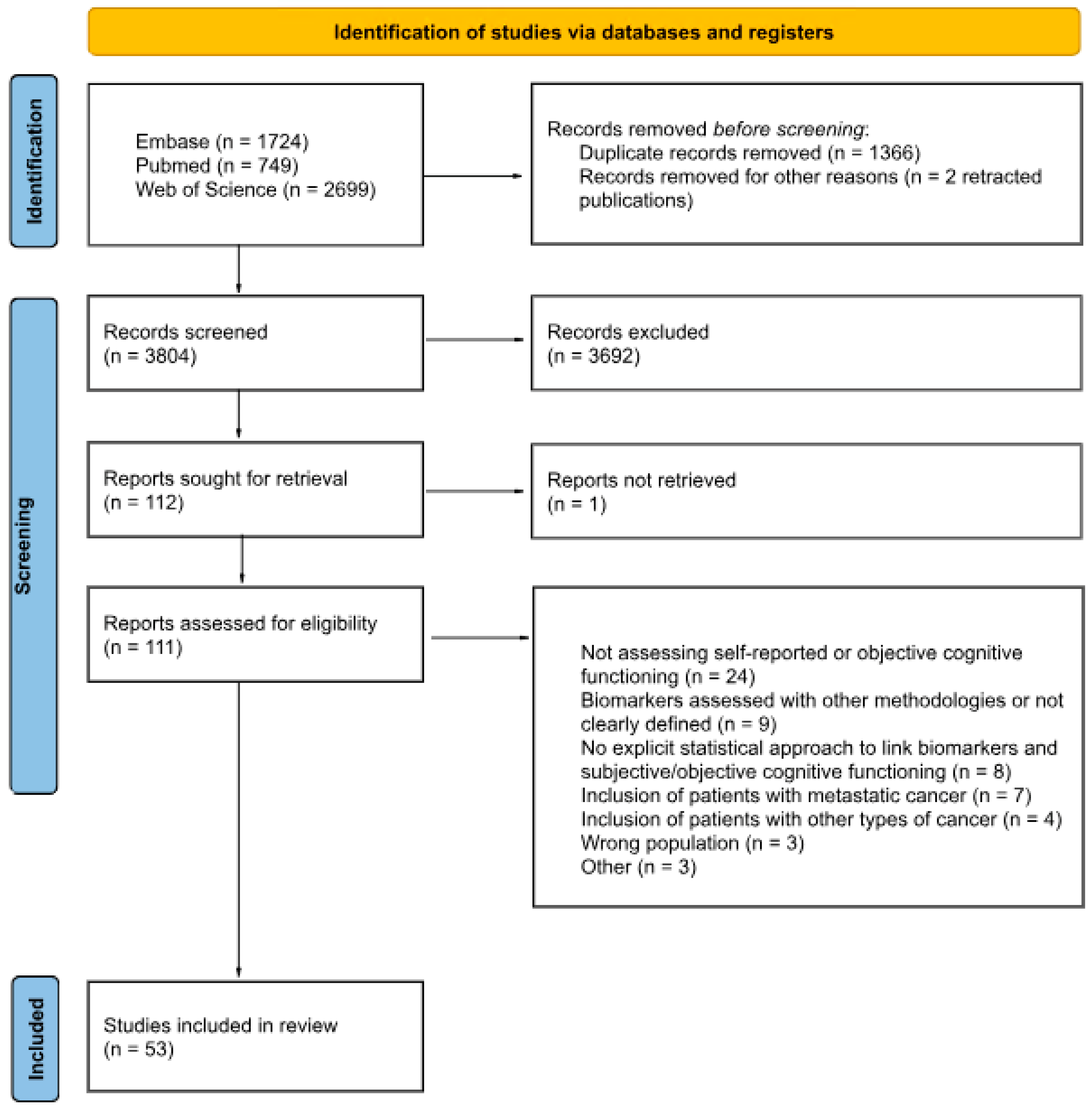 APA StyleBoschetti, A., Danesin, L., Bevilacqua, E., Giada, R., Gion, M., Conte, P., & Burgio, F. (2025). Investigating the Trajectories of Association Between Biomarkers and Cancer-Related Cognitive Impairment in Patients with Breast Cancer: A Systematic Review. Cancers, 17(21), 3522. https://doi.org/10.3390/cancers17213522
