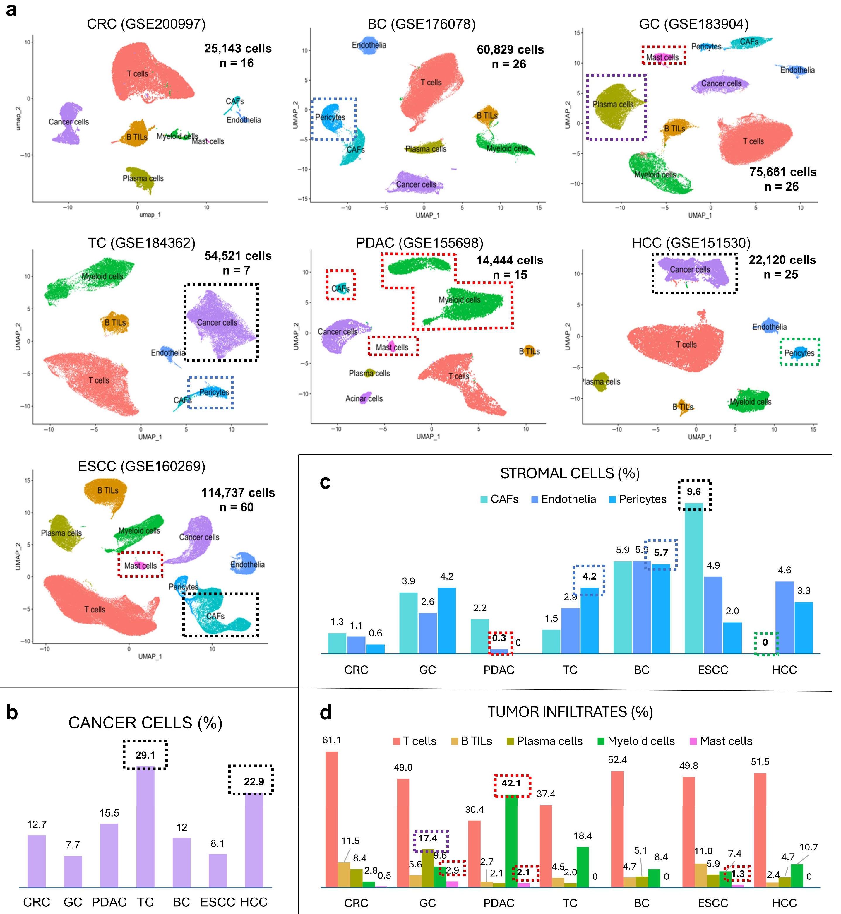 APA StyleOkamoto, R., Okuno, K., Watanabe, A., Naito, K., Minoura, H., Shibaki, S., Ikemura, K., Oki, K., Kuroda, Y., Fujino, S., Nie, Y., Nishizawa, N., Watanabe, E., Kikuchi, M., Kumagai, K., Yamanashi, T., Katoh, H., Takayasu, H., Sato, T., ... Yamashita, K. (2025). Comparative Oncology: Cross-Sectional Single-Cell Transcriptomic Profiling of the Tumor Microenvironment Across Seven Human Cancers. Cancers, 17(21), 3527. https://doi.org/10.3390/cancers17213527
