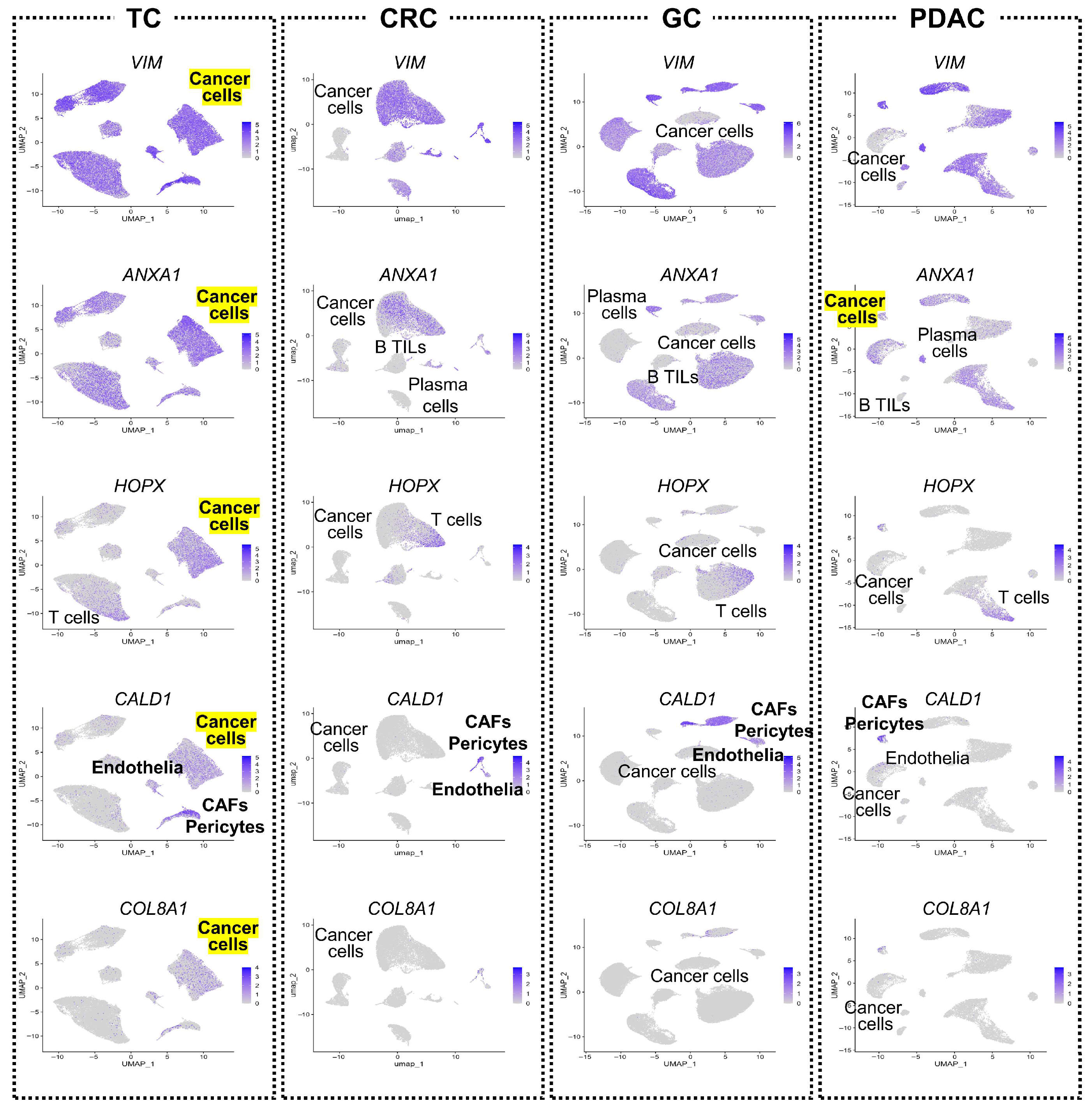 3.4. Comparative scRNA-seq Reveals Cancer-Specific Molecular Features