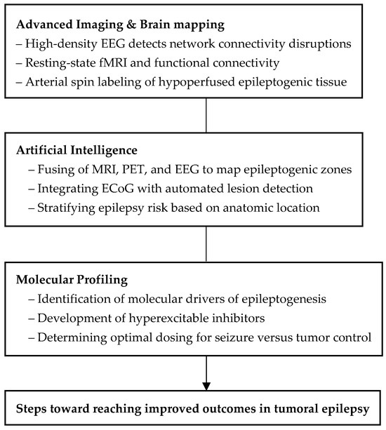 There are several tools that may help better characterize tumors’ epileptogenic potential: artificial intelligence (AI), new imaging modalities, and molecular biomarkers. Integrating these into the clinical workflow may improve surgical outcomes. Figure 1 highlights emerging technologies aimed at improving outcomes in tumoral epilepsy.