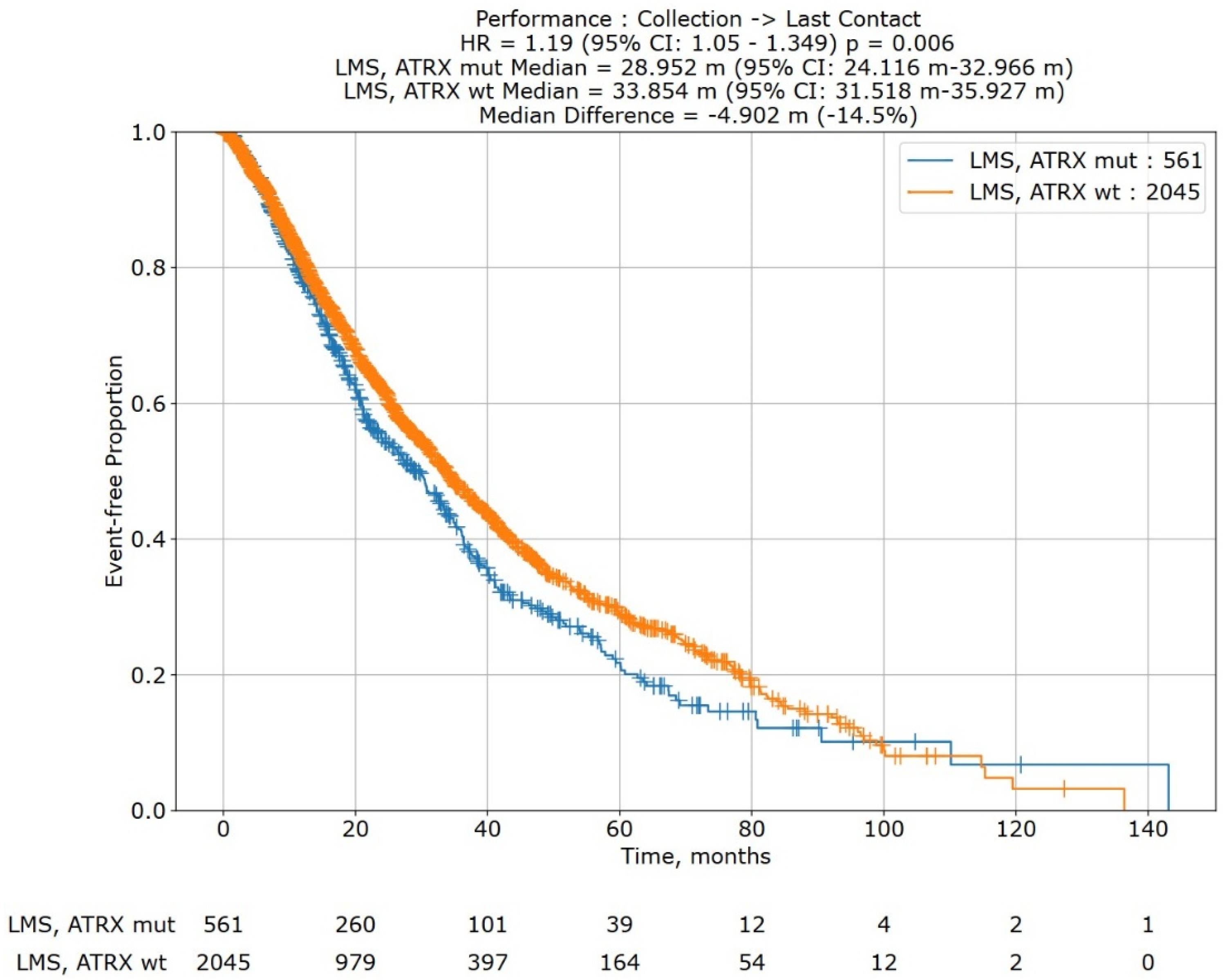 3.8. Post Hoc Survival Analysis of ATRX Mutations in LMS
