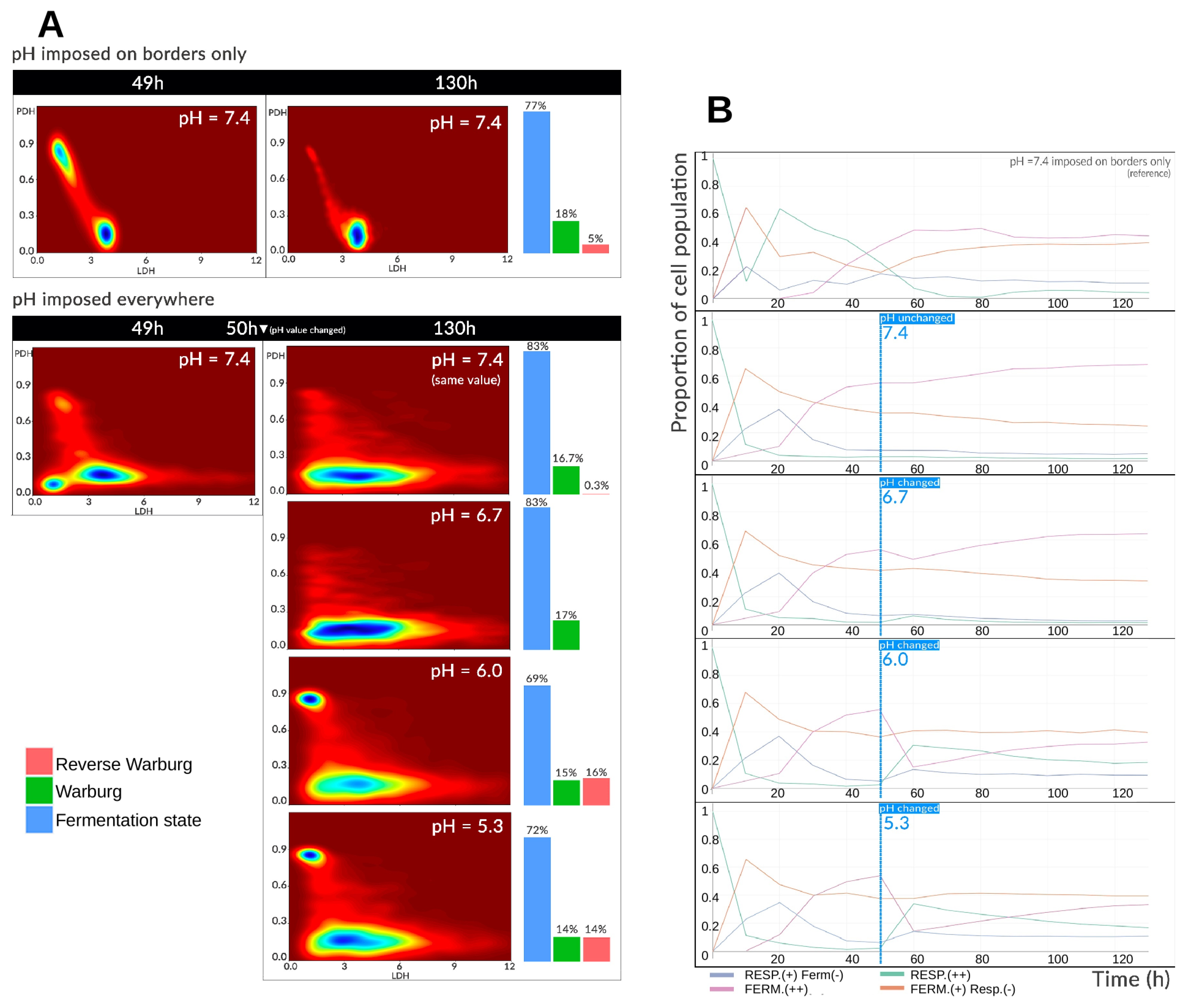- The extracellular environment is updated dynamically, and pH—which can reshape the metabolic landscape—is included.