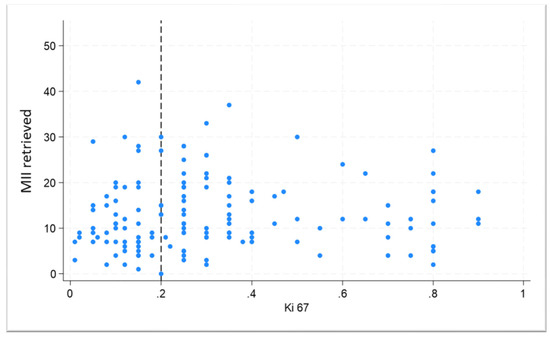 Correlation between Ki-67 expression and the number of metaphase II oocytes retrieved.