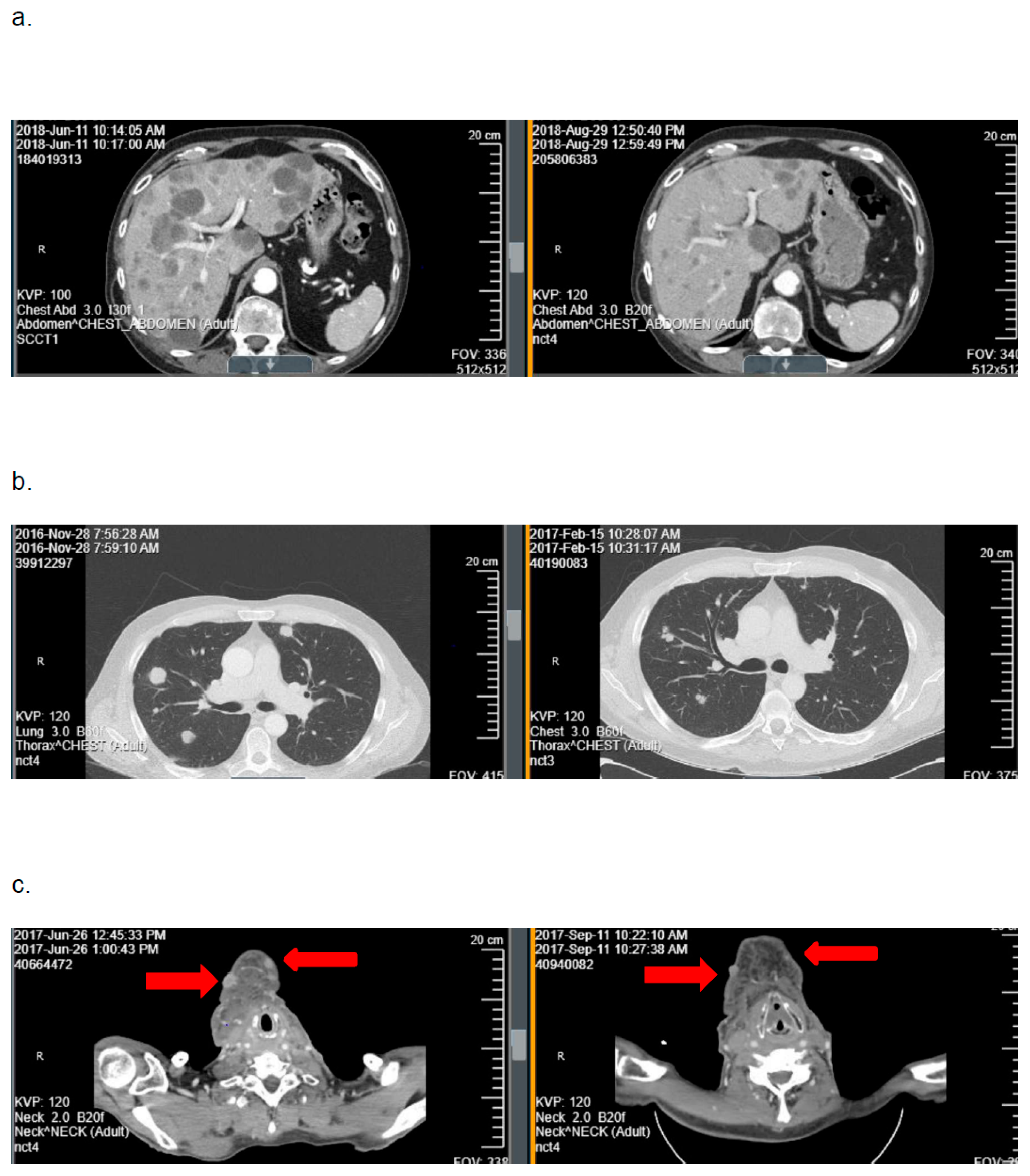 - Eisenhauer, E.A.; Therasse, P.; Bogaerts, J.; Schwartz, L.H.; Sargent, D.; Ford, R.; Dancey, J.; Arbuck, S.; Gwyther, S.; Mooney, M.; et al. New response evaluation criteria in solid tumours: Revised RECIST guideline (version 1.1). Eur. J. Ca. 2009, 45, 228–247. [Google Scholar] [CrossRef]