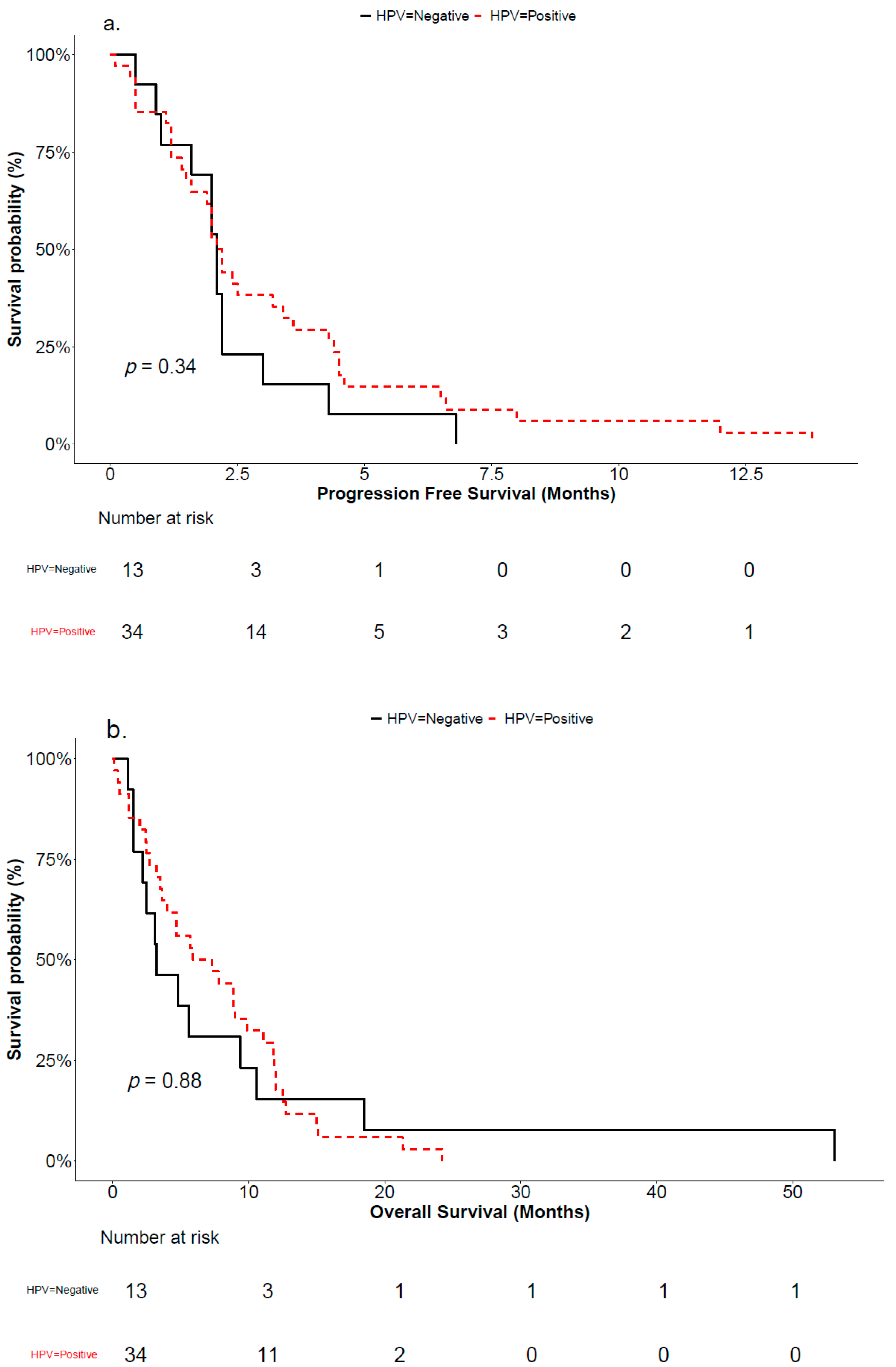 Chicago/Turabian StyleOppelt, Peter, Jessica Ley, Christine Auberle, Brendan Knapp, Jesse Zaretsky, Fei Wan, and Douglas Adkins. 2025. "Mitomycin-C for HPV-Positive and HPV-Negative Platinum-Refractory, Recurrent or Metastatic Head and Neck Squamous Cell Carcinoma: A Phase 2 Trial" Cancers 17, no. 21: 3568. https://doi.org/10.3390/cancers17213568