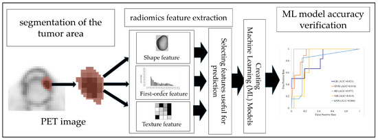 Many studies have used radiomics-based ML models to evaluate the histological type of OSCC and the presence of lymph node metastasis [11,12,13,14]. It is also reported that PET is useful for evaluating early-stage OSCC [15,16,17]. Several studies have reported that PET-based radiomics ML models can improve the diagnostic accuracy for OSCC on PET [18,19].