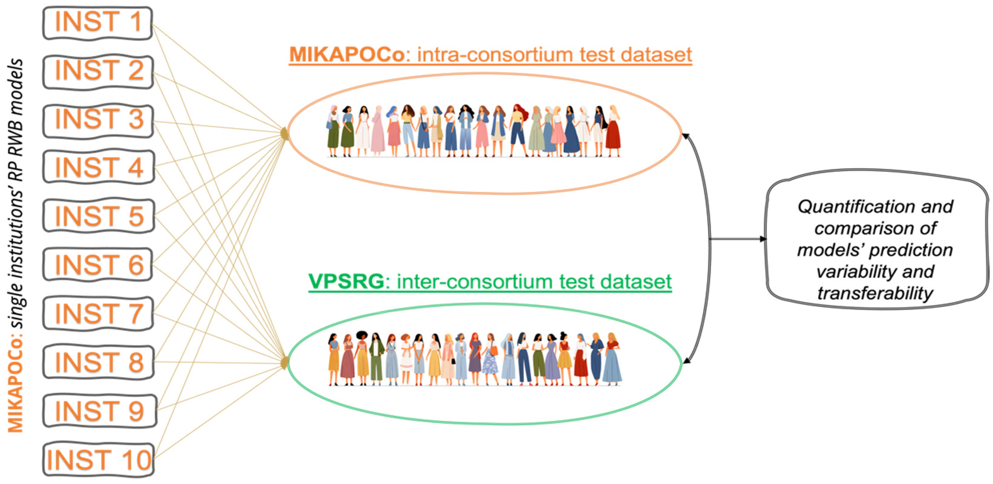 - Model-to-model variability: For each patient, spread of predictions across the 10 site-specific models, aggregated to quantify dependence on model provenance/training distribution.