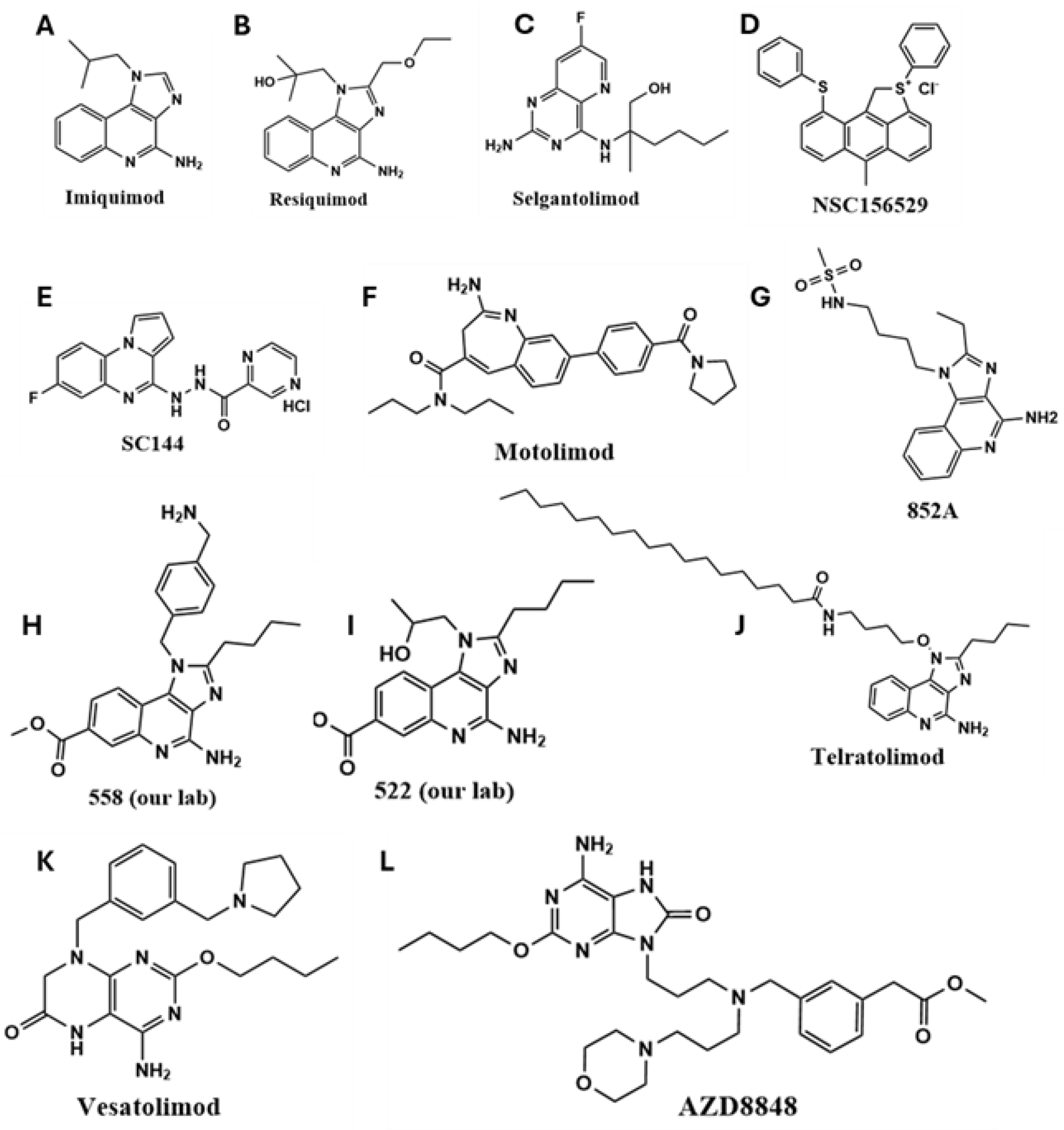 - Wang, Z.; Gao, Y.; He, L.; Sun, S.; Xia, T.; Hu, L.; Yao, L.; Wang, L.; Li, D.; Shi, H.; et al. Structure-Based Design of Highly Potent Toll-like Receptor 7/8 Dual Agonists for Cancer Immunotherapy. J. Med. Chem. 2021, 64, 7507–7532. [Google Scholar] [CrossRef]