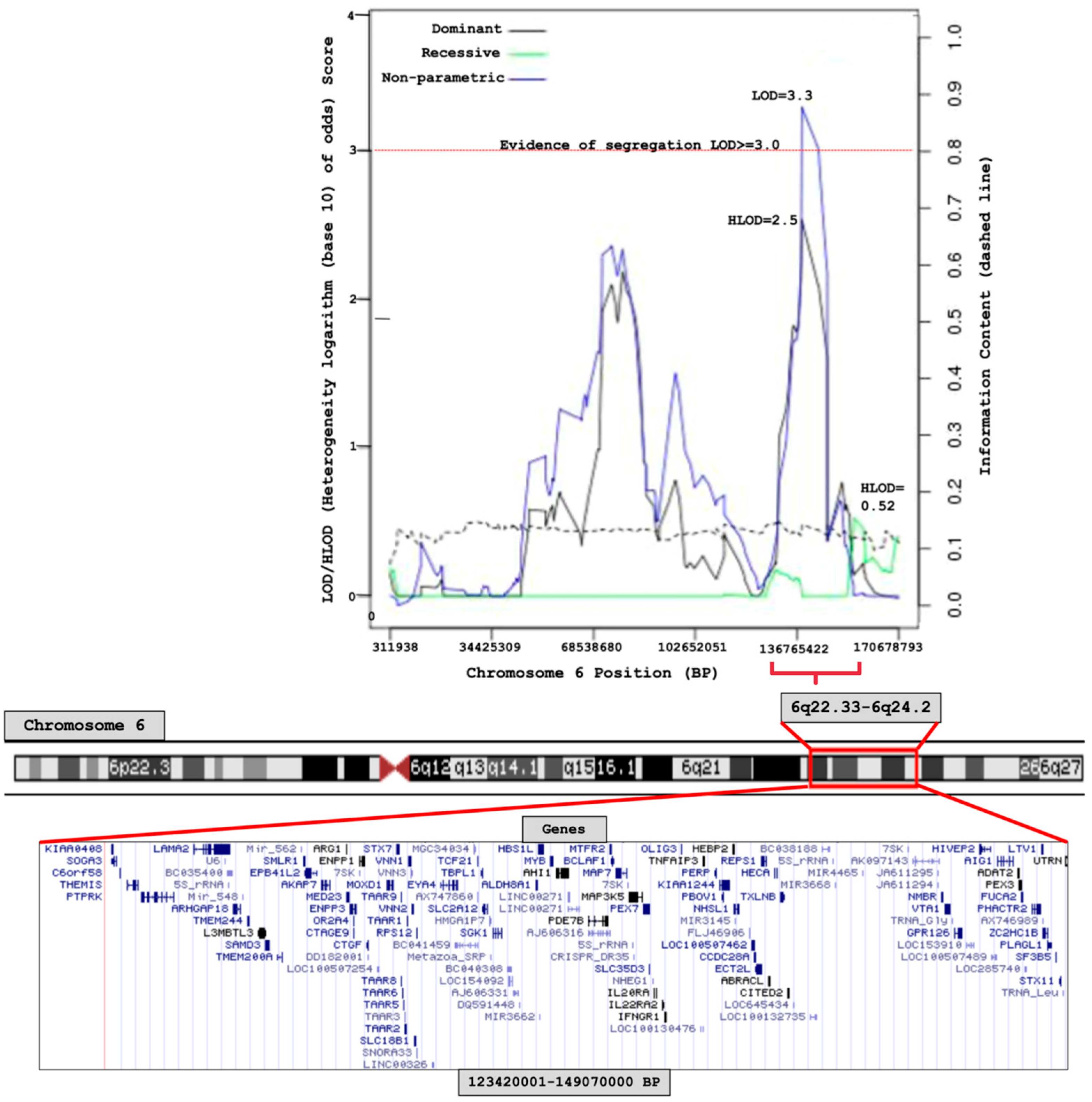 - Kong, A.; Cox, N.J. Allele-sharing models: LOD scores and accurate linkage tests. Am. J. Hum. Genet. 1997, 61, 1179–1188. [Google Scholar] [CrossRef]