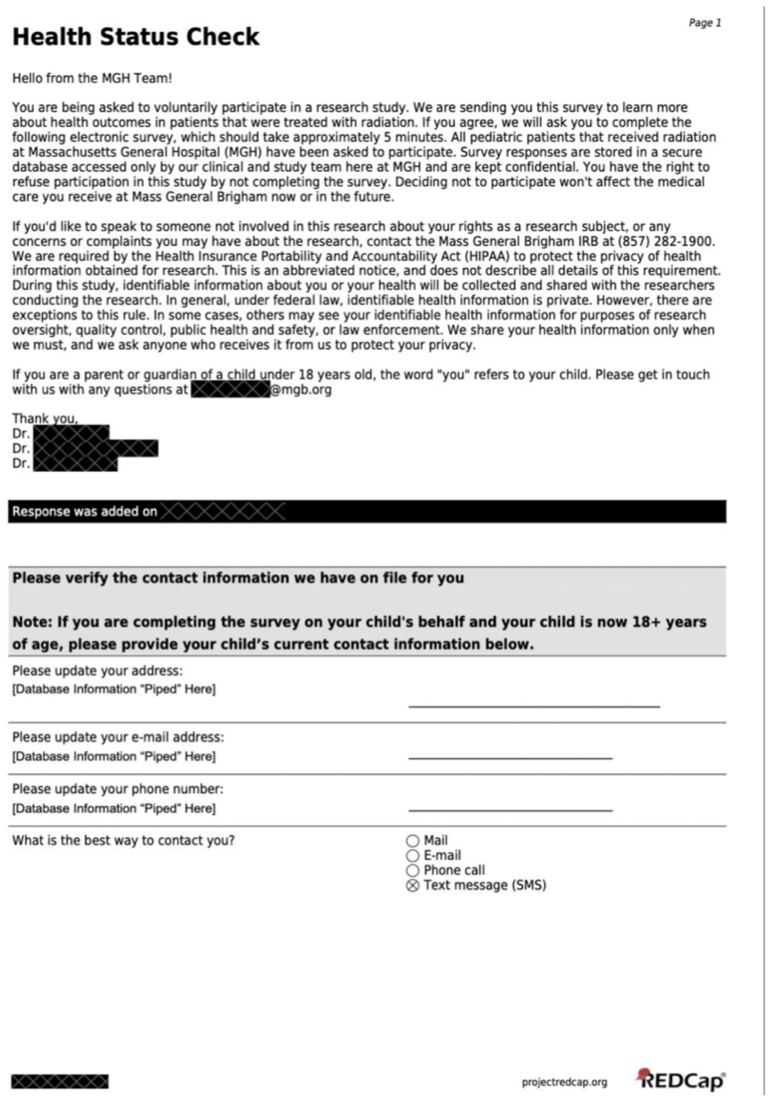 Implementation and Evaluation of a Patient-Reported Health Status Survey for Survivors of Childhood Malignancies Treated with Radiation †