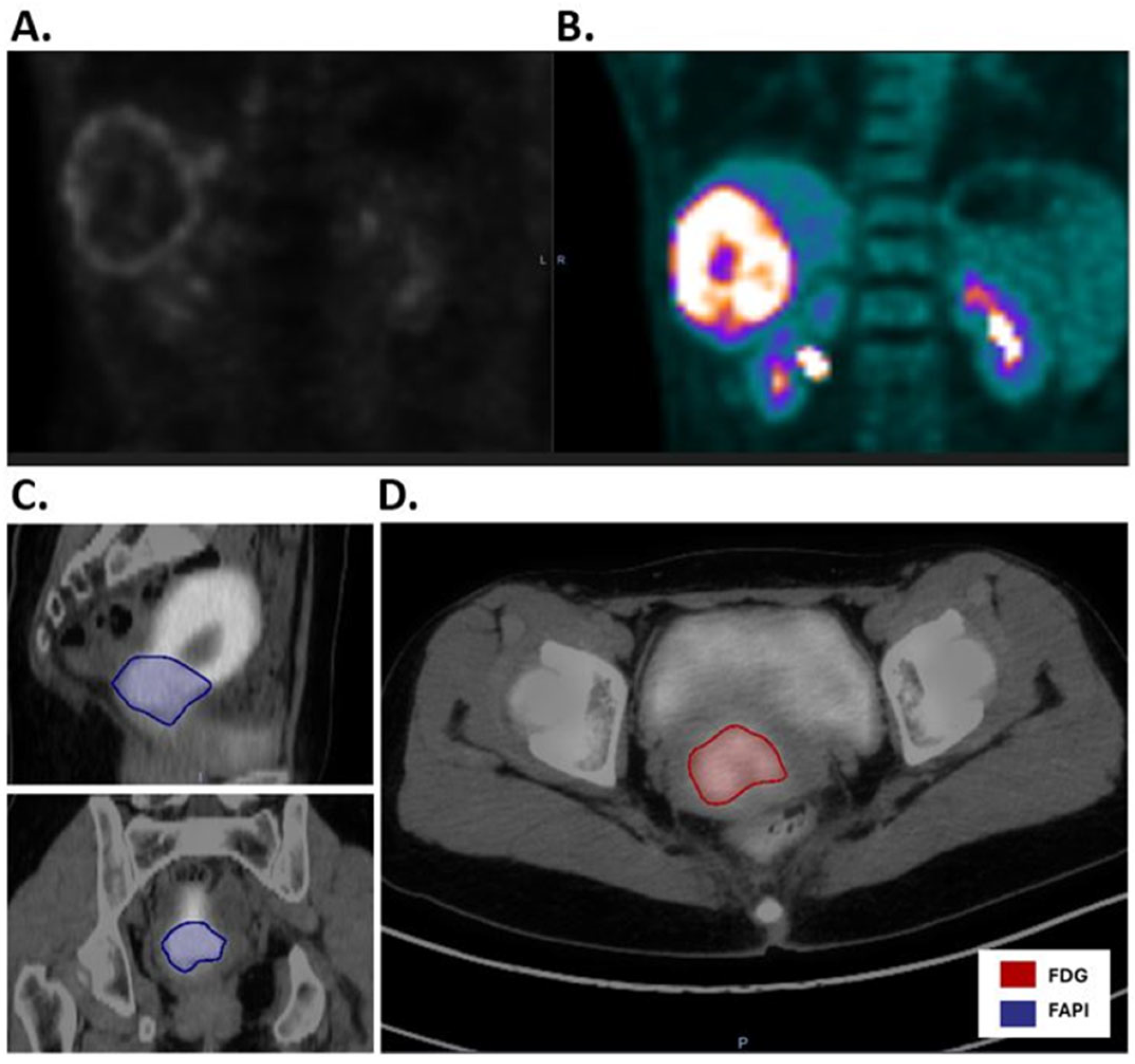 - Giesel, F.L.; Kratochwil, C.; Schlittenhardt, J.; Dendl, K.; Eiber, M.; Staudinger, F.; Kessler, L.; Fendler, W.P.; Lindner, T.; Koerber, S.A.; et al. Head-to-head intra-individual comparison of biodistribution and tumor uptake of (68)Ga-FAPI and (18)F-FDG PET/CT in cancer patients. Eur. J. Nucl. Med. Mol. Imaging 2021, 48, 4377–4385. [Google Scholar] [CrossRef] [PubMed]