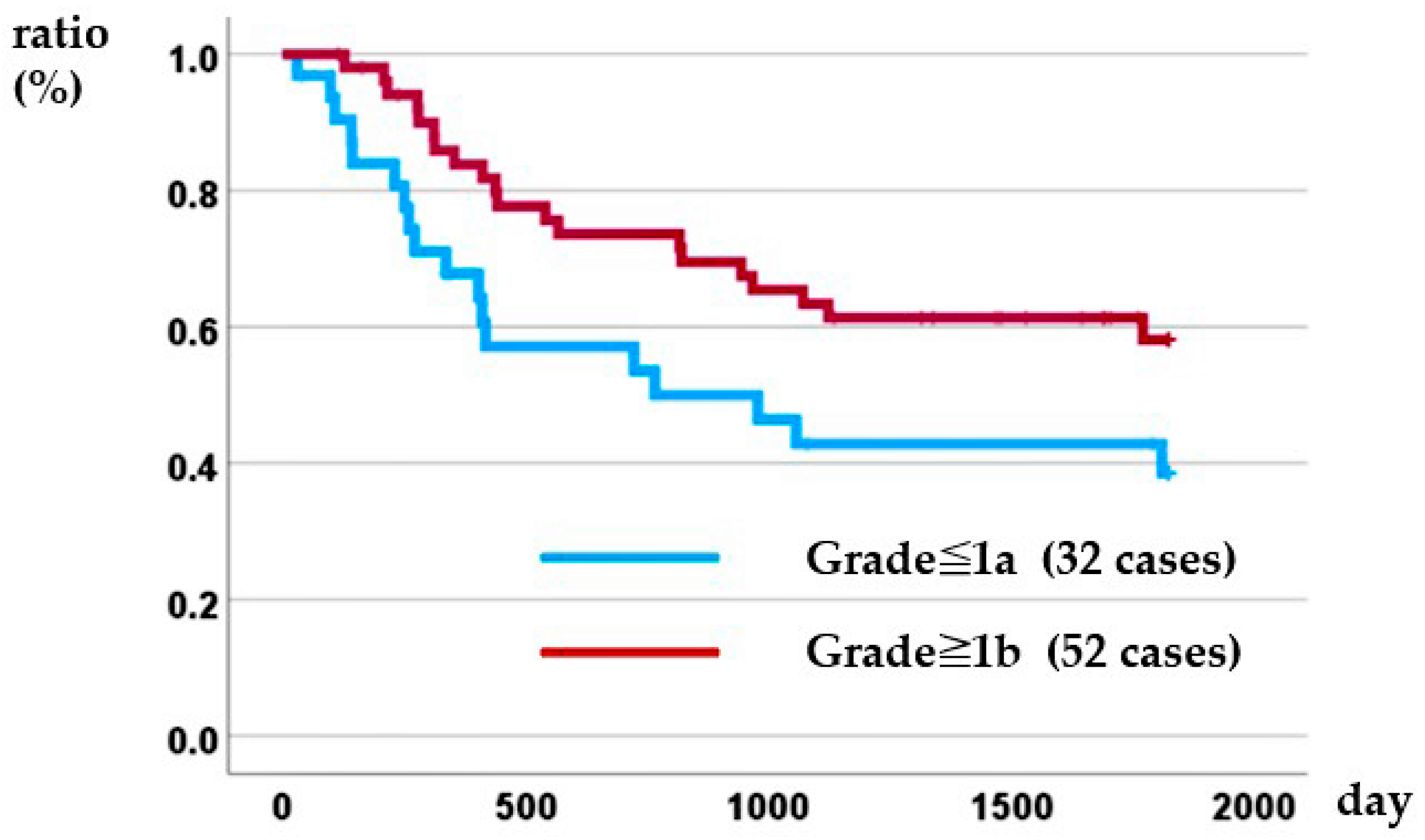| Histological responses | Grade ≤ 1a vs. Grade ≥ 1b | 0.460 | 0.242–0.875 | 0.018 |
