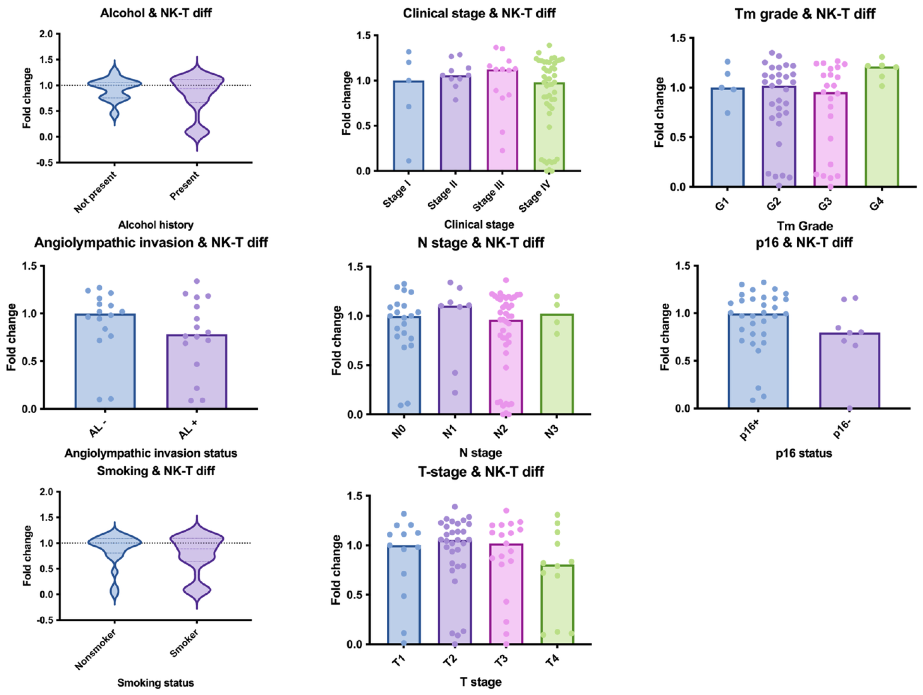 - Wagner, S.; Wittekindt, C.; Reuschenbach, M.; Hennig, B.; Thevarajah, M.; Würdemann, N.; Prigge, E.S.; Von Knebel Doeberitz, M.; Dreyer, T.; Gattenlöhner, S.; et al. CD56-Positive Lymphocyte Infiltration in Relation to Human Papillomavirus Association and Prognostic Significance in Oropharyngeal Squamous Cell Carcinoma. Int. J. Cancer 2016, 138, 2263–2273. [Google Scholar] [CrossRef]