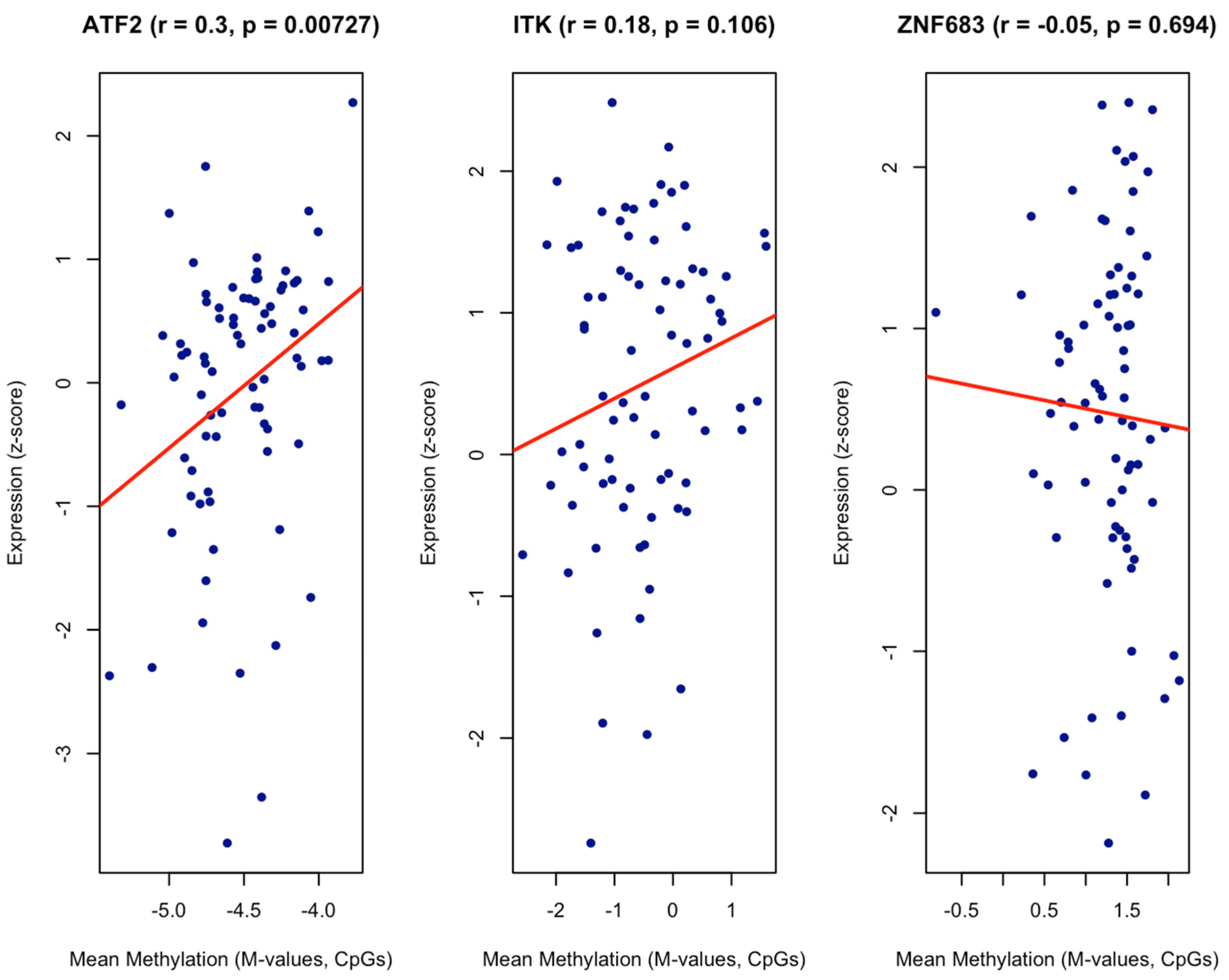 | ZNF683 | 0.96 | 0.84 | −0.11 | 0.93 | −1.15 | 0.26 |