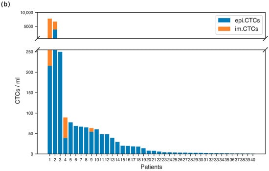 - Higa, N.; Limb, A.; Hennes, V.; Rivera, A.; Nevarez, R.; Kolatkar, A.; Tweed, C.K.; Riker, A.I.; Lee, Y.; Tafra, L.; et al. Simultaneous expression of epithelial and immune cell markers in circulating tumor cells identified in patients with stage 4 breast cancer. Commun. Med. 2025, 5, 309. [Google Scholar] [CrossRef]