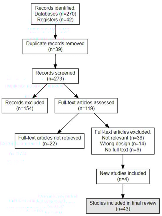 - Page, M.J.; McKenzie, J.E.; Bossuyt, P.M.; Boutron, I.; Hoffmann, T.C.; Mulrow, C.D.; Shamseer, L.; Tetzlaff, J.M.; Akl, E.A.; Brennan, S.E.; et al. The PRISMA 2020 statement: An updated guideline for reporting systematic reviews. BMJ 2021, 372, 71. [Google Scholar] [CrossRef]