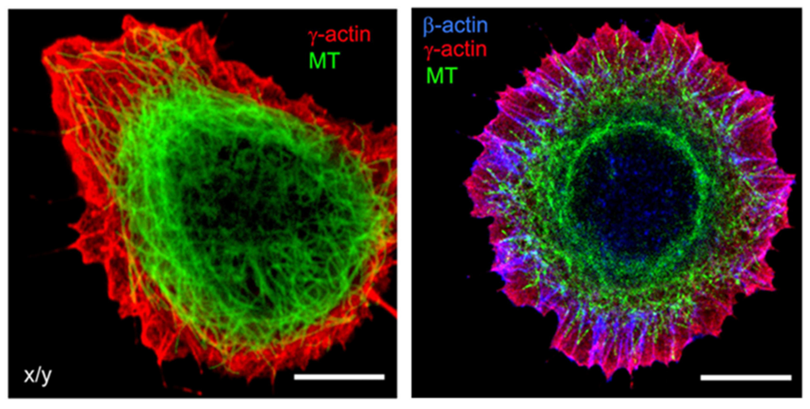 Cellular processes require tight coordination between microtubules and actin filaments [