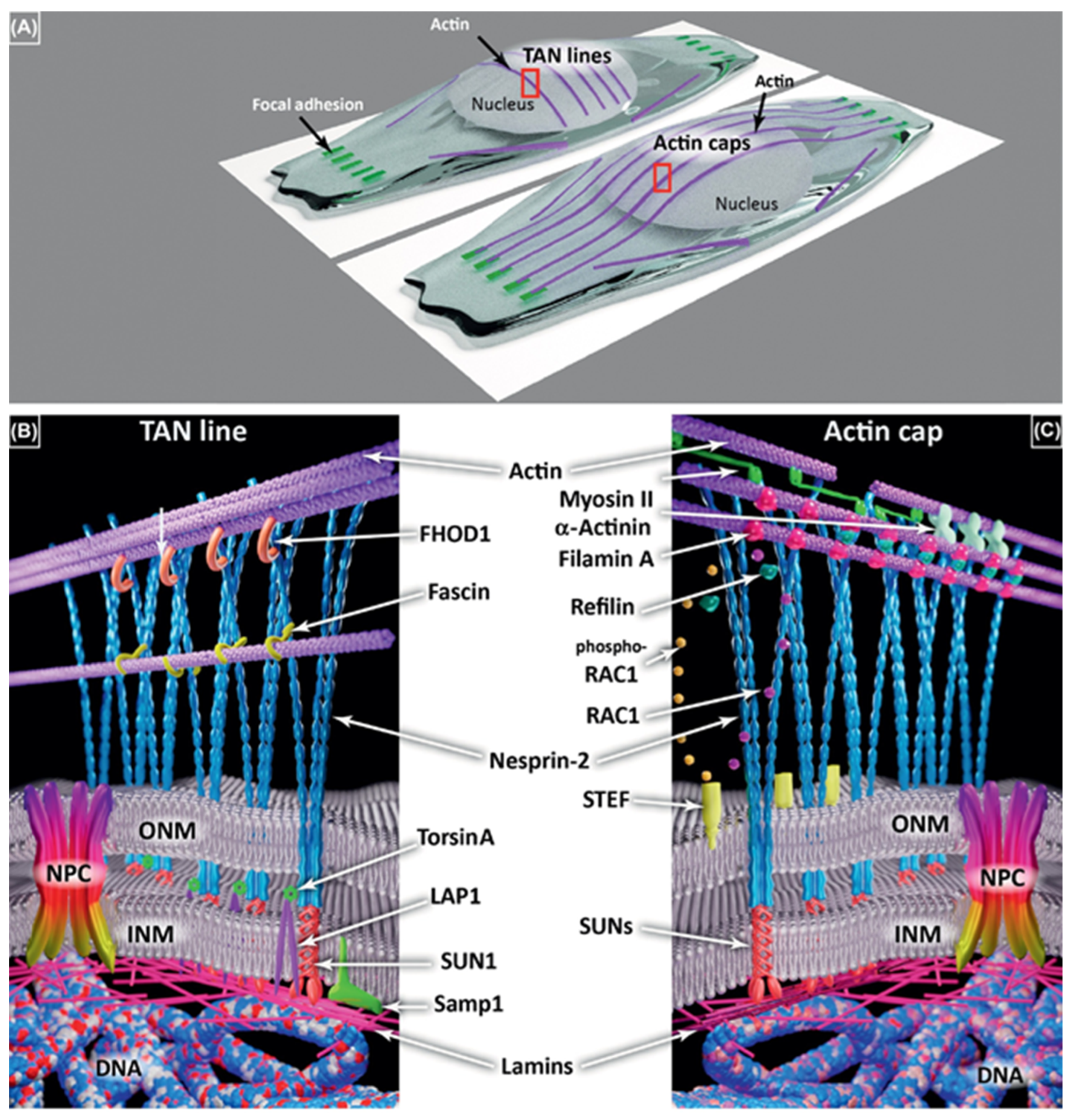 It appears plausible that actin and myosin motility can transmit external signals to internal actin filaments in order to coordinate with Transmembrane Actin-Associated Nuclear (TAN) Lines and Perinuclear Actin Caps and regulate nuclear reactions in connection with nuclear actin and nuclear matrix [