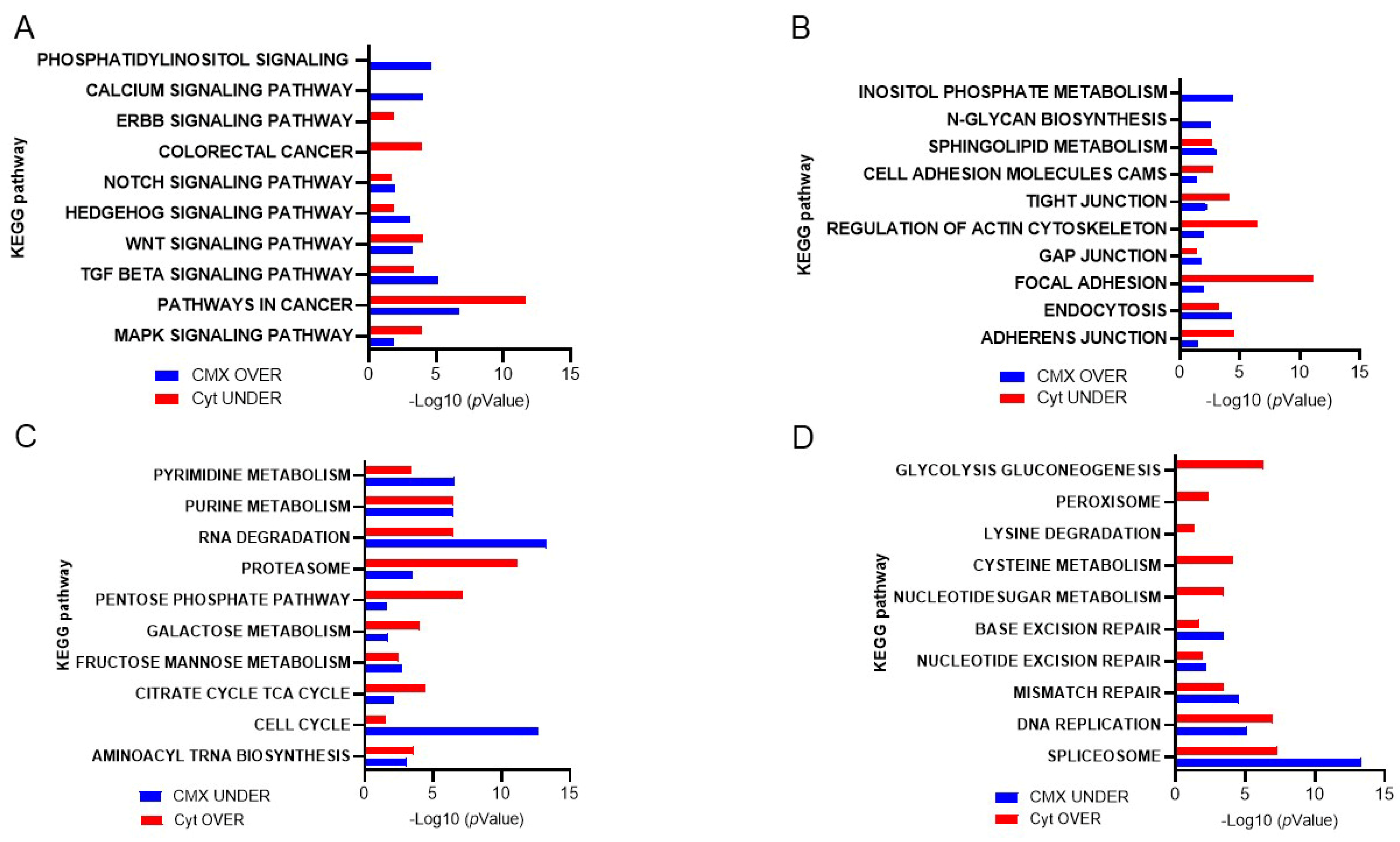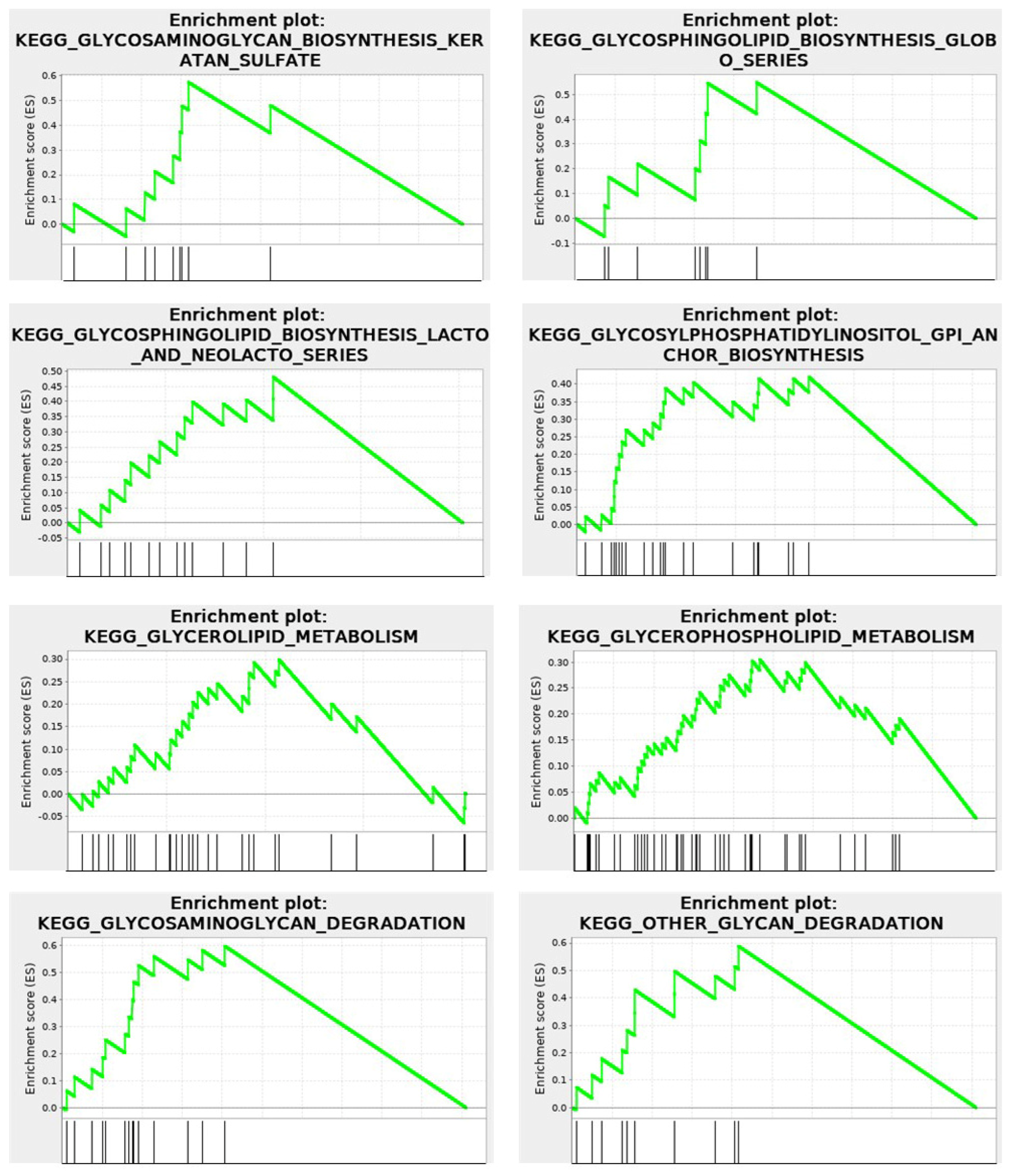 The KEGG enrichment plots of the cytomatrix illustrate the connection between the intracellular matrix and the ECM. In addition, post-translational modifications (PTMs), such as N- and O-glycan glycosylation, including the metabolism of glycosaminoglycans, glycosphingolipids, glycolipids, and glycerophospholipids, and others, take place in the cytomatrix. These are essential for the formation of cell surface proteoglycans and glycolipoproteins, which mature in the cytomatrix (