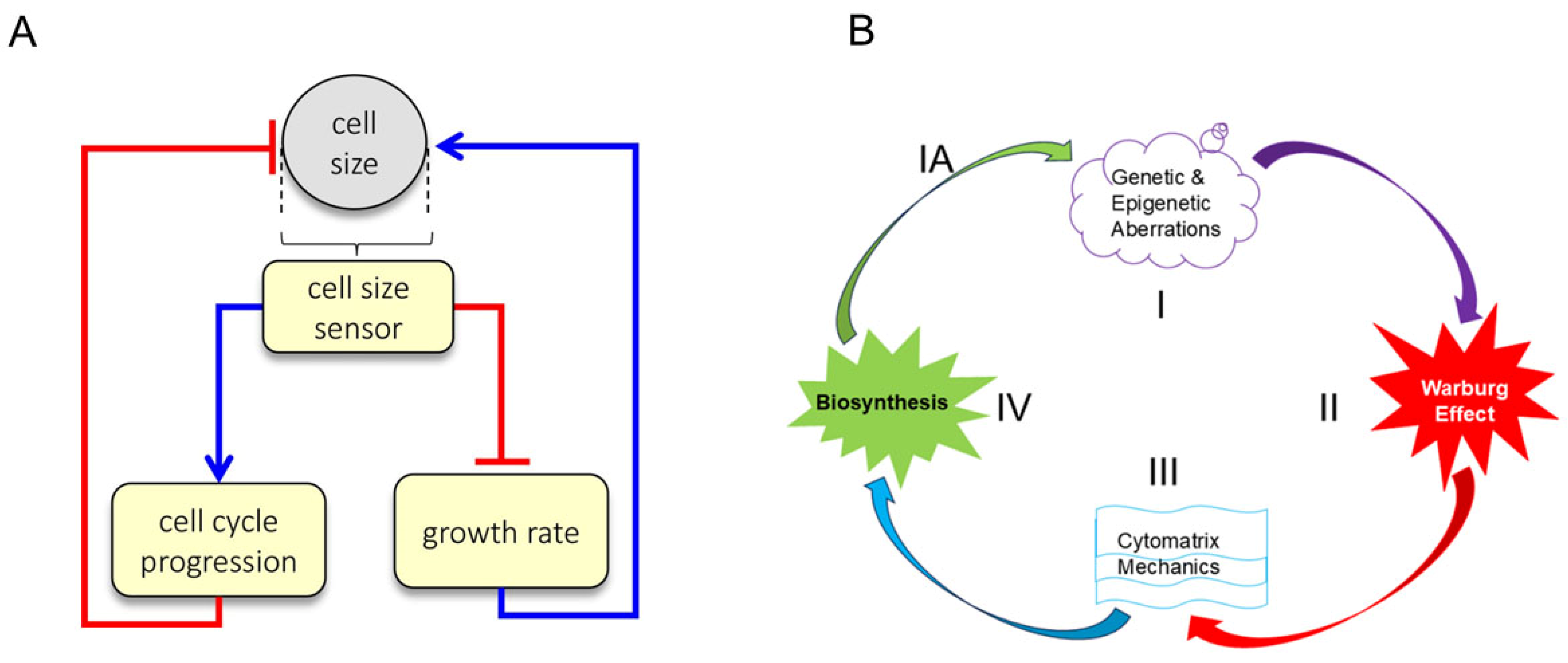 Thus, tumor cell division is a consequence of alterations in biosynthesis and cell size (mass), in which actin dynamics require energy, which is supplied by aerobic glycolysis, producing lactate as a byproduct. The development of tumors from mutated cells requires at least four conditions, beginning with genetic and/or epigenetic modifications of genes. Tumor cell growth requires energy (the Warburg effect) to support cytomatrix mechanics and biosynthesis (