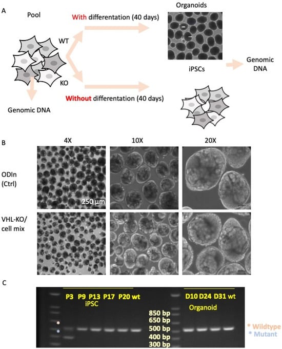 New disease models are required for ccRCC in order to develop improved therapies. ccRCC premalignant stage is technically difficult to observe, and transgenic mouse models and xenograft models seem to advance to a high-grade tumor without reproducing the initial histopathological changes. Based on the co-existence of multifocal ccRCC lesions and renal cysts in the von Hippel–Lindau syndrome patients, the current hypothesis is that the dilation of renal epithelial tubules gives rise to cystic structures that eventually transform to ccRCC. However, direct observation of the proposed premalignant structures and their progression has not been reported due to technical challenges. A promising solution is to model early oncogenic events in vitro by reprogramming cancer cells into induced pluripotent stem cells (iPSCs) and subsequently re-differentiate them into the organ-of-origin of the primary cancer. Kidney cancer tumorigenesis relies on reactivation of developmental pathways, particularly those governing simple kidney structures, such as the tubules [,,,,]. Notably, precursor lesions of clear cell renal cell carcinoma are thought to originate from epithelial tubules [,]. We propose that by driving ccRCC-iPS cells through morphogenesis, divergence from normal tissue differentiation could capture key events in cancer initiation. Using this workflow, Kim et al. was able to generate iPSC lines from pancreatic intraepithelial neoplasia lesions, the precursor of pancreatic ductal adenocarcinoma []. iPSC lines could also be generated from several hematological malignancies [,]. However, success seems to be tissue and mutation dependent. In a recent review of adult cell and pluripotent cell-derived organoids for renal cancer modeling, only adult cell-derived kidney spheroids were successful, while derivation of kidney cancer-model organoids from pluripotent cells was not []. It is now widely recognized that reprogramming is a significant bottleneck in developing iPSC-based cancer models [,,]. A possible explanation is that cancer driver mutations interfere with somatic cell reprogramming. Here we study the role of the VHL gene in reprogramming ccRCC.