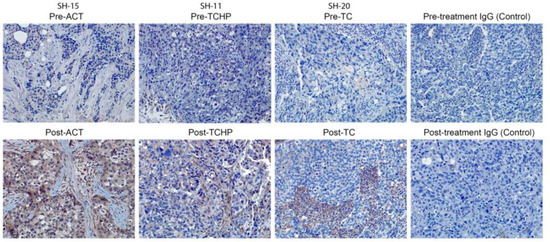 In the original publication [1], there was a mistake in Figure 4 as published. Figure 4 was found to have incorrectly duplicated the post-treatment IgG (control) image in place of the SH-11 pre-TCHP image. All original images for this paper were reviewed and the correct SH-11 pre-TCHP image representing the SH-11 pre-TCHP sample has been inserted in Figure 4. The corrected Figure 4 appears below. The authors confirm that the scientific conclusions are unaffected. This correction was approved by the Academic Editor. The original publication has also been updated.
