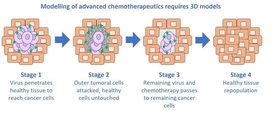 3.3. Treatment with Oncolytic Viral Loaded Chemotherapeutics Promotes the Stable and Effective Destruction of Colorectal 3D Tumors