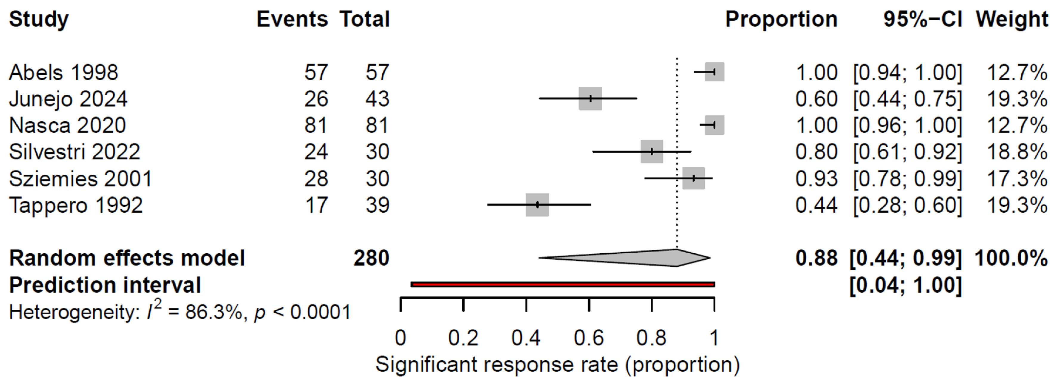 | Nasca, 2020 [20] | Italy | Observational | 83 (64–86) | 7 (77.8) | NA | Classic (9, 100) | 9 (81) | Nodules | 0.5–3 cm | Moderate |