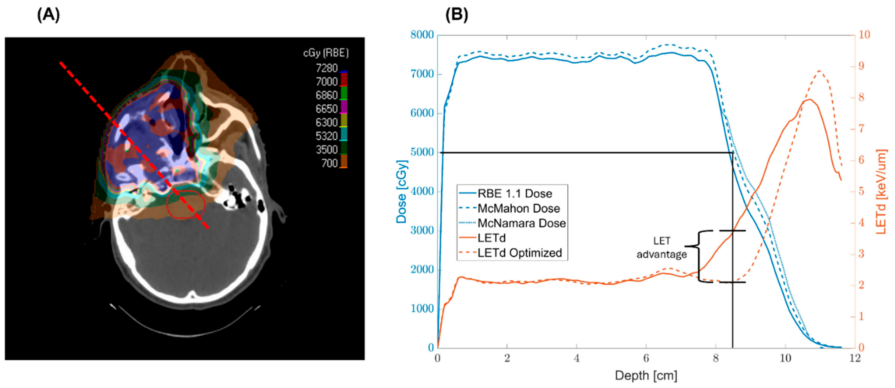 - Deng, W.; Yang, Y.; Liu, C.; Bues, M.; Mohan, R.; Wong, W.W.; Foote, R.H.; Patel, S.H.; Liu, W. A Critical Review of LET-Based Intensity-Modulated Proton Therapy Plan Evaluation and Optimization for Head and Neck Cancer Management. Int. J. Part. Ther. 2021, 8, 36–49. [Google Scholar] [CrossRef]