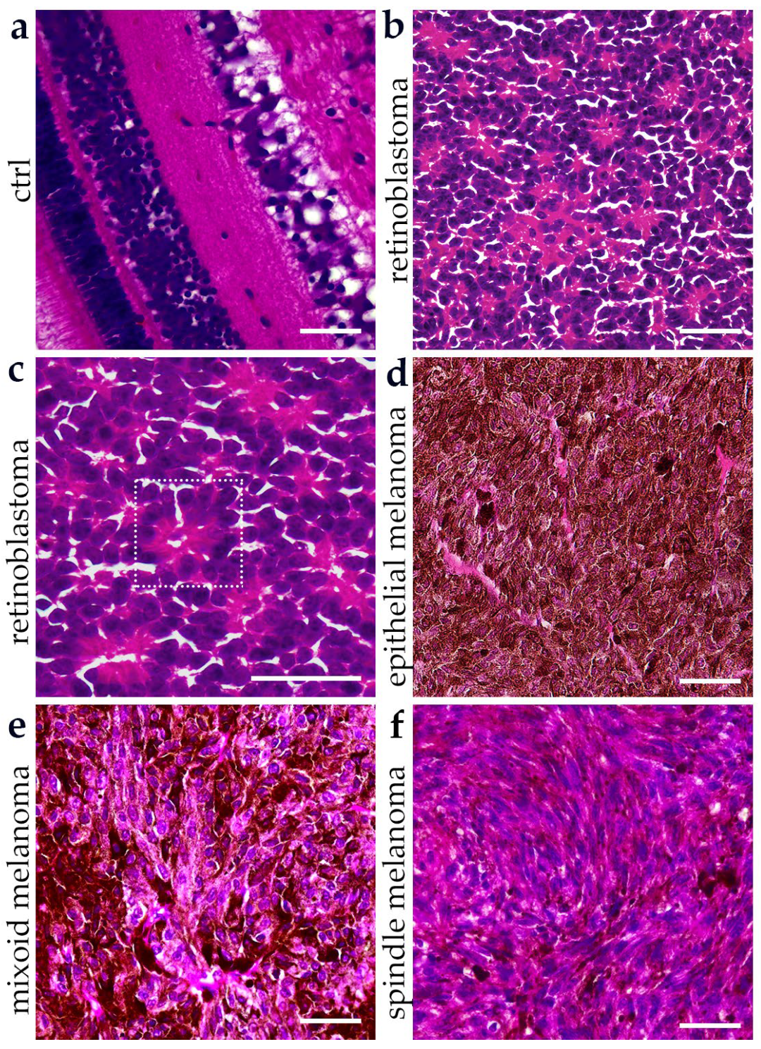 n = 30). Control tissues were derived from enucleated eyes for non-neoplastic conditions or from histologically normal regions of eyes removed for RB or melanoma, confirmed by a pathologist. The study was performed with the approval of the Ethics Committee of the University Hospital of Split (protocol code: class 500-03/22-01/47; No: 2181-147/01/06/M.S.-22-02 and date of approval 31 March 2022) in accordance with the Declaration of Helsinki and its updates [