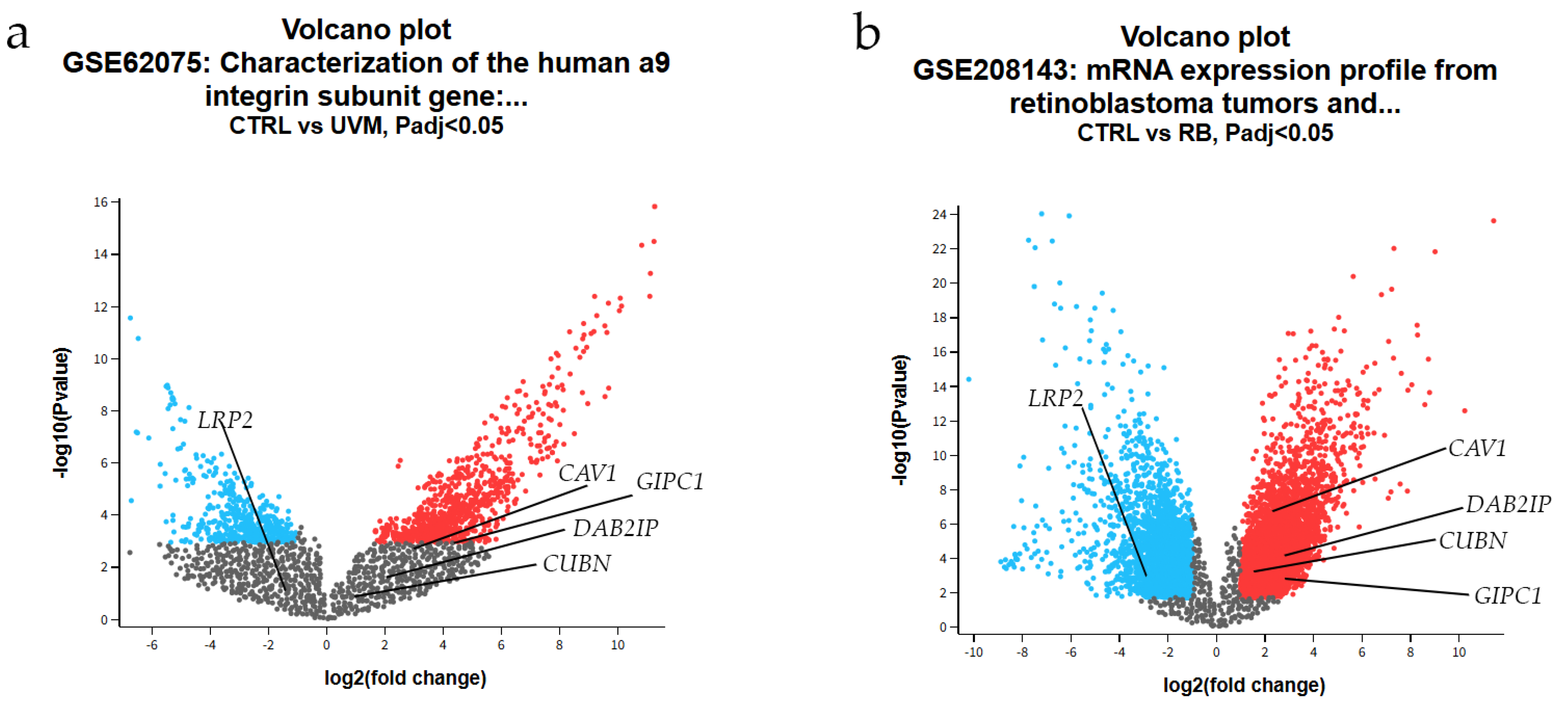 LRP2 downregulation in ocular tumors was directly corroborated at the mRNA level in GSE208143 (RB vs. control retina), where