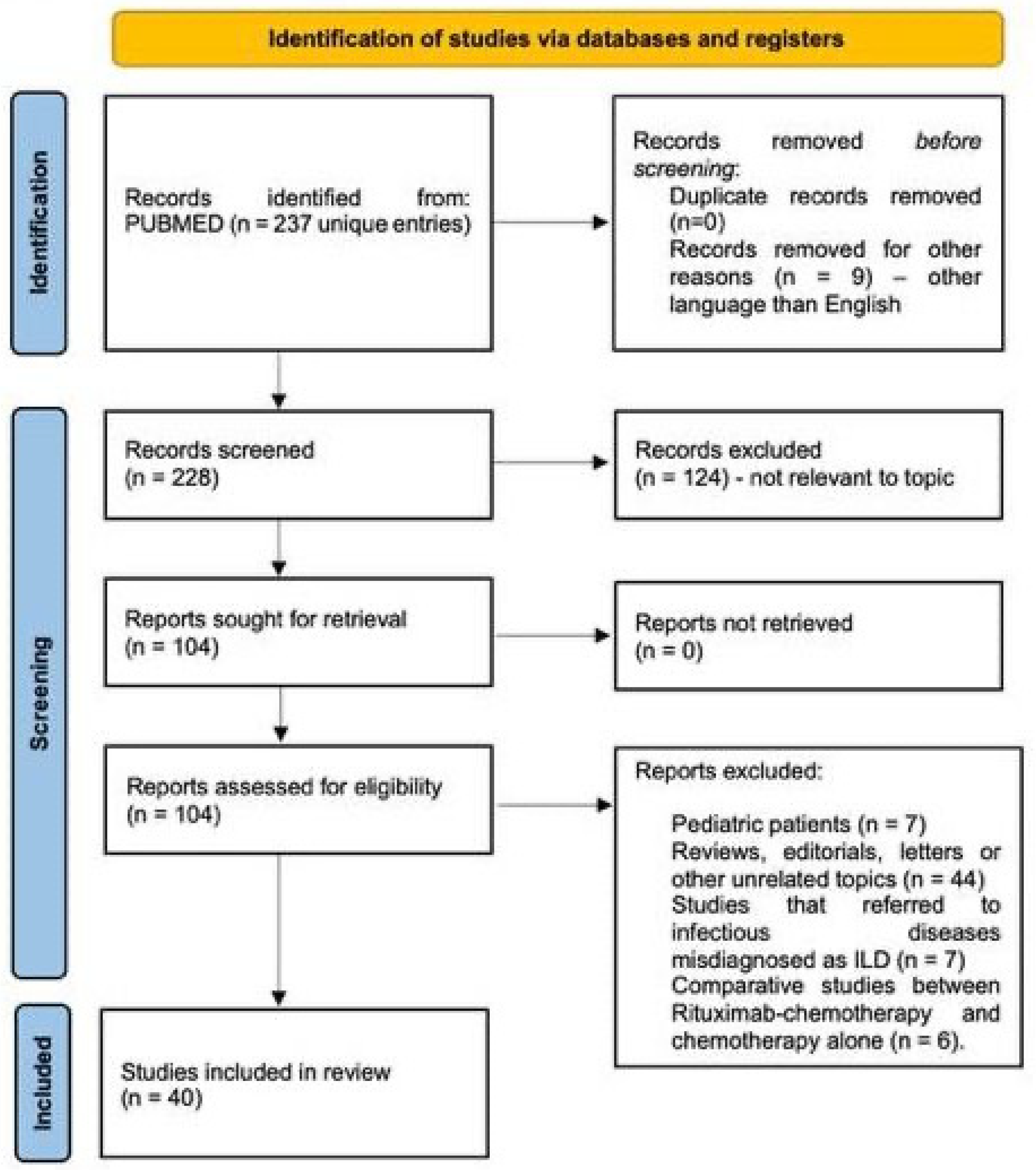 Chicago/Turabian StyleZamfir, Alexandra-Simona, Mihai-Vasile Marinca, Carmen Lăcrămioara Zamfir, Gabriela Bordeianu, Andrada-Larisa Deac, Bogdan-Mihnea Ciuntu, Cătălina Teodora Pintilie, Doina Ojog, Marcela Brînză, and Tudor Andrei Cernomaz. 2025. "Rituximab-Induced Interstitial Lung Disease: A Possible Underestimated Complication—A Systematic Review" Cancers 17, no. 23: 3786. https://doi.org/10.3390/cancers17233786